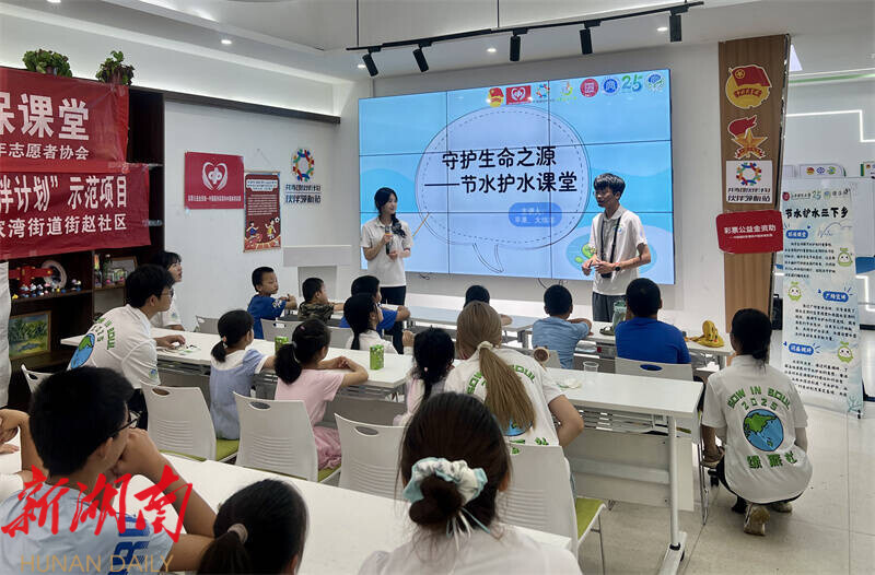 随后,社团成员来到县青少年服务中心,为孩子们带来了一场别开生面的节水环保课堂。课堂上,学生们通过生动的图片、有趣的案例和互动环节,向孩子们普及水生态保护知识,引导他们树立环保意识,激发他们对家乡水生态环境的关注与热爱。