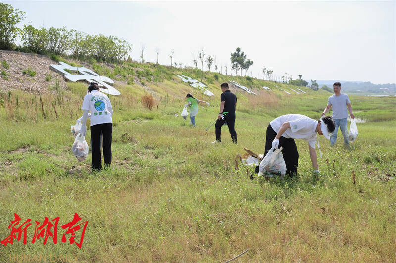 抵达新墙河八仙桥段后,社团成员与工作人员一起开展了清河净滩活动。他们手持工具,沿着河岸仔细清理各类垃圾,用实际行动践行环保理念,为守护新墙河的美丽生态贡献力量。