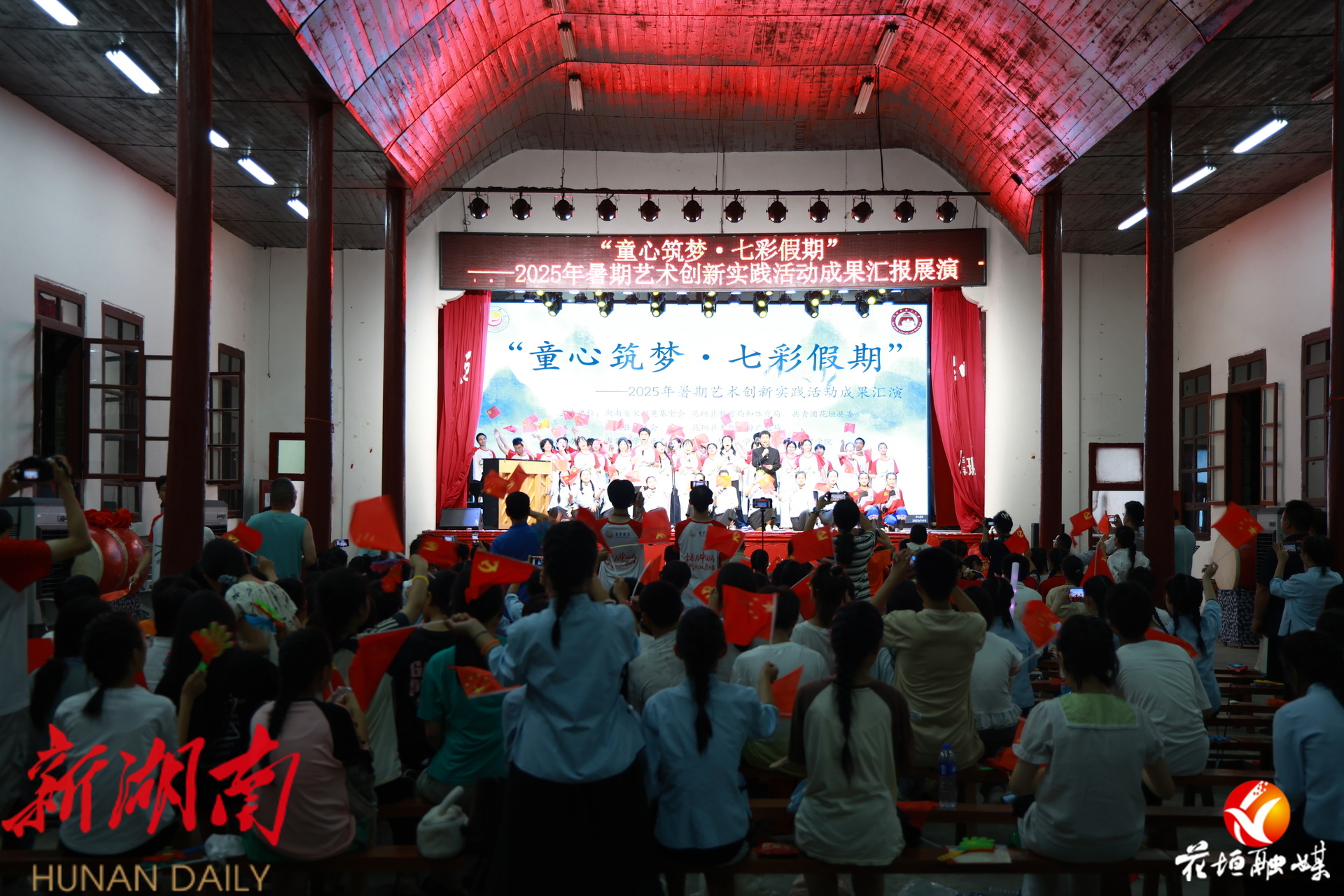 湖南日报·新湖南客户端7月16日讯(通讯员 邓雨露 谢馨语)7月15日晚,“童心筑梦·七彩假期”暑期艺术创新实践活动结业汇报演出在花垣县第三中学精彩上演。学生们通过非遗展演、科技展示、歌舞合唱等多元形式,全面呈现了十天来的学习成果,为暑期实践活动画上圆满句号。