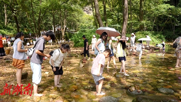 “这里像一个天然的空调,山水之间特别有灵气,就像进入修仙小说里边一样,很适合带着小孩一起来。”游客万先生说道。