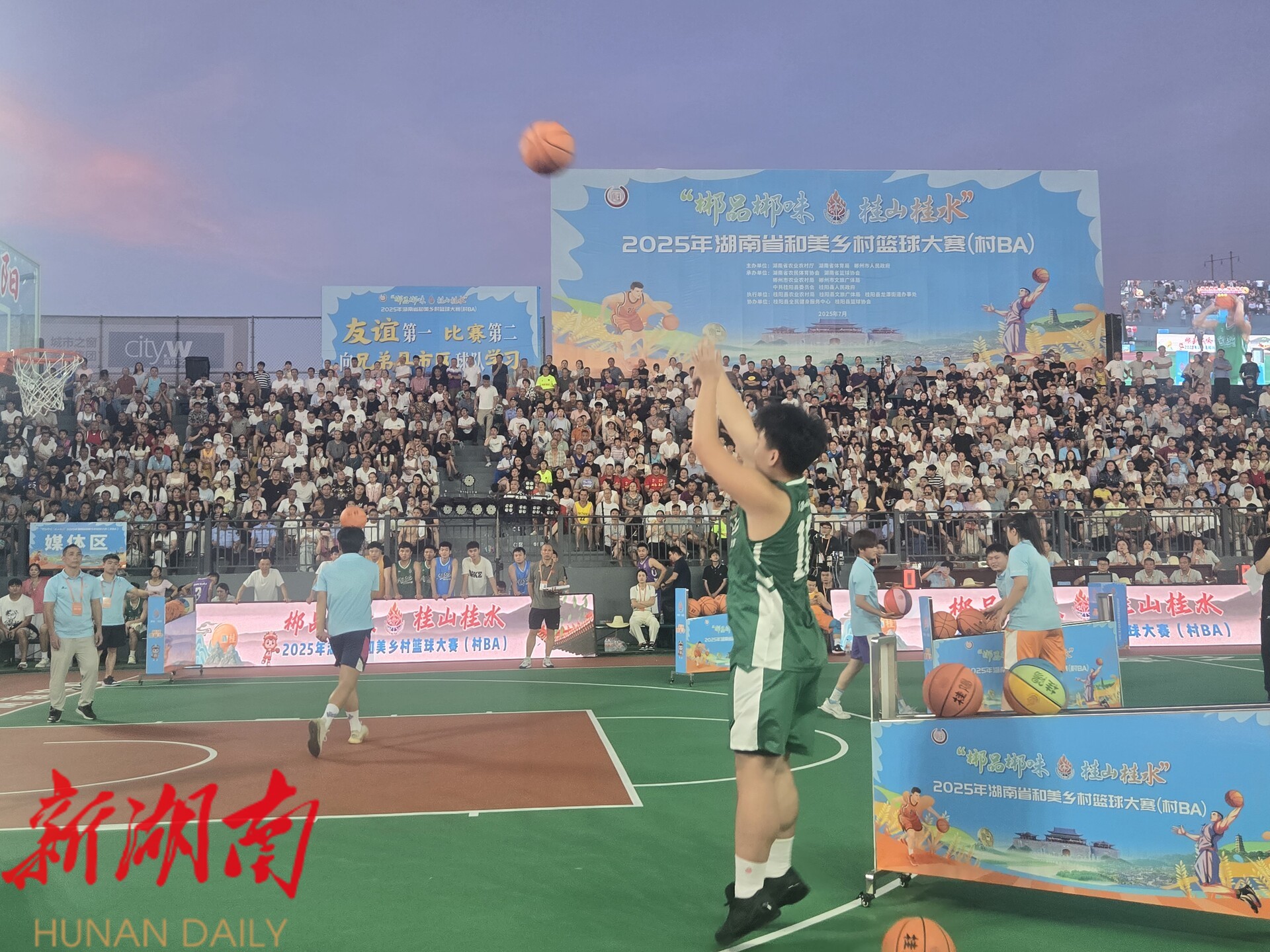 新桂阳7月17日讯(记者 李子璇 唐汀 通讯员 李芳红)7月16日晚,2025年湖南省和美乡村篮球大赛(村BA)举办篮球嘉年华活动,来自全省各区县代表队的“明星球员”和现场球迷携手合作、同台竞技,点燃篮球热情。