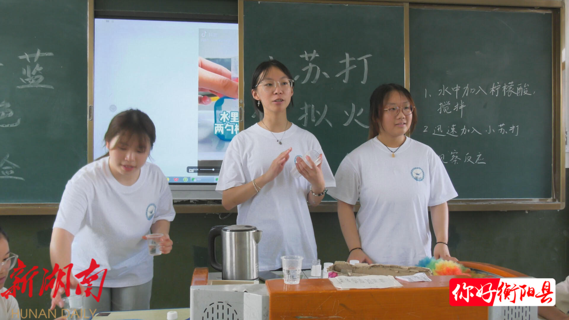 衡阳县融媒7月17日讯(记者 :姚康 吕文煜 ) 7月15日,团县委联合县委社会工作部、井头镇、三湖镇、 中 南大学、 湖南师范大学“三下乡”团队, 开展12355青春自护·平安暑期暨“雁回衡阳”返家乡大学生暑期社会实践活动,高校学子带着精心准备的文化、艺术等课程走进乡村校园,为同学们带来知识与欢乐并存的假期体验。
