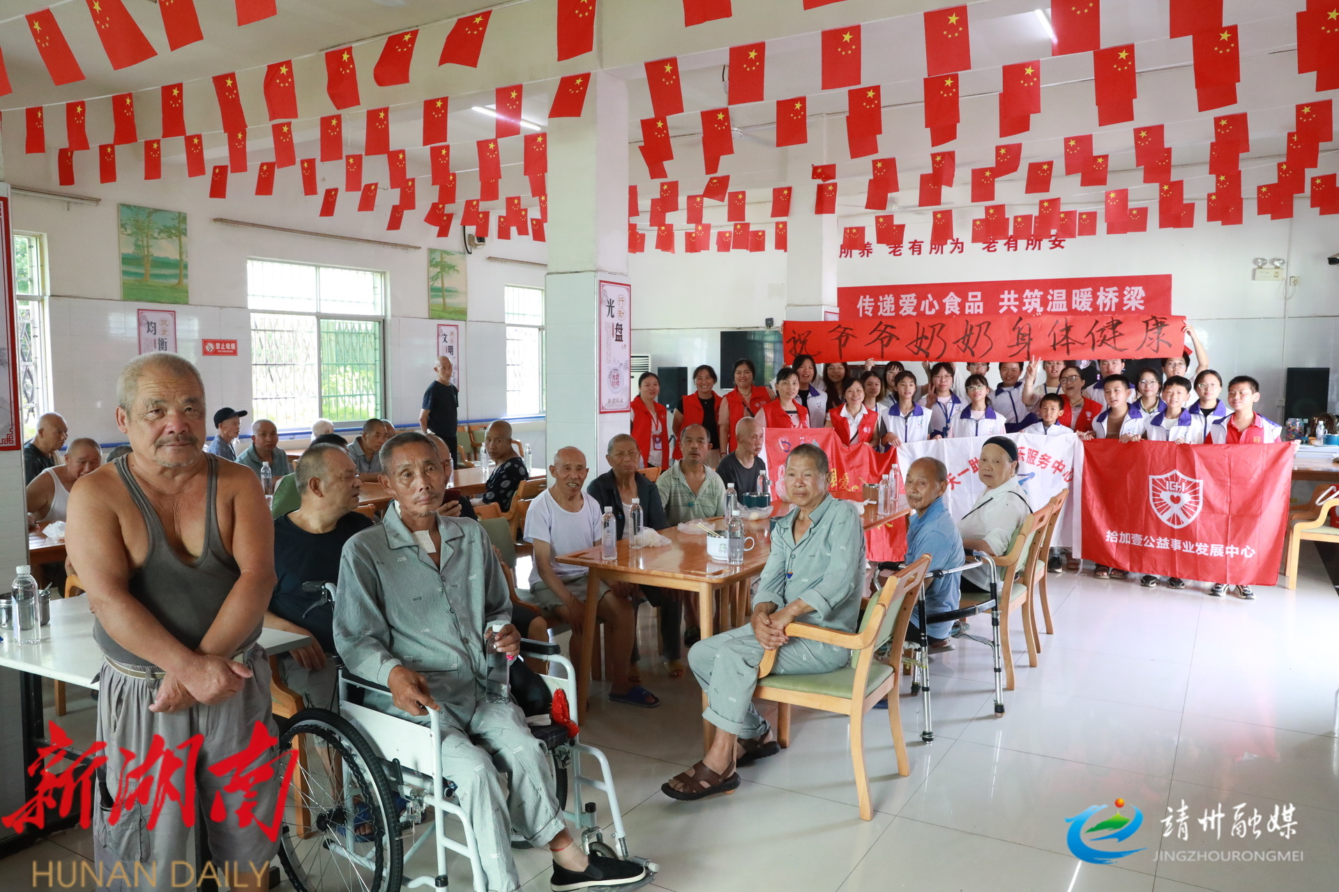 靖州融媒7月17日讯 (记者 钦苏芬)7月17日,靖州苗族侗族自治县福利院内暖意融融,天一助人康乐服务中心受助孩子的妈妈们组成的“爱心妈妈团队”, 携子女与志愿者一同来到这里,围绕“传递爱心食品 共筑温暖桥梁”主题开展活动,为老人们送去关怀与温暖。