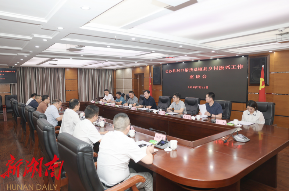 湖南日报·新湖南客户端7月17日讯(通讯员 高丽文 龙慧玲 叶尹浩)7月16日,长沙县对口帮扶桑植县乡村振兴工作座谈会召开,深化两地的交流合作,共同推动对口帮扶工作向更高层次、更宽领域拓展和深化。长沙县委副书记、县长陈永高,县委常委、县委组织部部长黄永华,副县长涂亚鹏;桑植县委副书记、县长梁高武,县领导王兴树、黄斌、张金华、周擎参加。