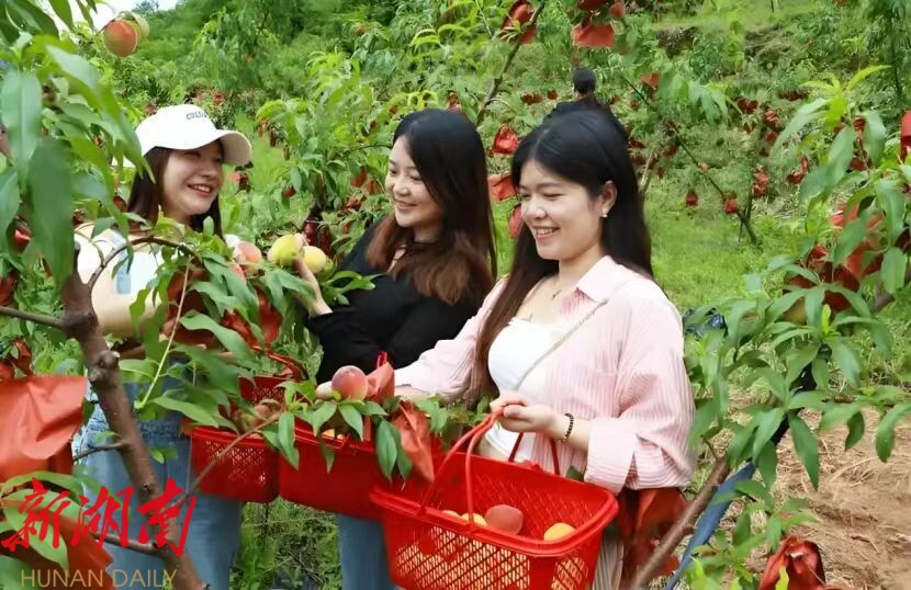 据悉,新邵县拥有像月亮湖生态农林产业园这样的黄桃基地50余家,年产黄桃等优质水果1000吨以上,每年为当地增收近2000万元,安排当地村民就业300余人。为了黄桃促销,该县每年举办“黄桃节”,各基地推出优惠采摘、参与有礼活动,邀请网红、团购达人进行现场直播带货、开团销售,并开展文艺表演、游戏互动及黄桃评比活动,当天线上销售黄桃收入达数十万元。