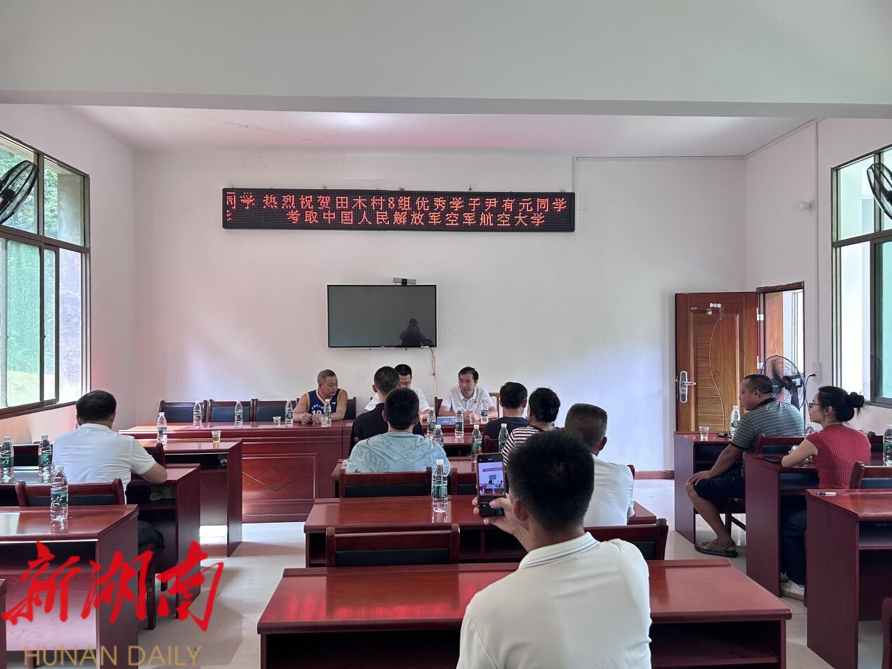 新桂阳7月18日讯(通讯员 杨壮壮 邓超)7月17日,莲塘镇田木村党群服务中心内喜气洋洋、掌声不断,“逐梦蓝天 筑梦青春”——尹有元同学考取中国人民解放军空军航空大学祝贺会在此隆重举行。莲塘镇党委、政府代表、莲塘镇教育基金会、田木村乡亲邻里及尹有元同学家人齐聚一堂,共同见证这位莲塘镇田木村飞出的“雏鹰”开启人生新程的荣耀时刻。