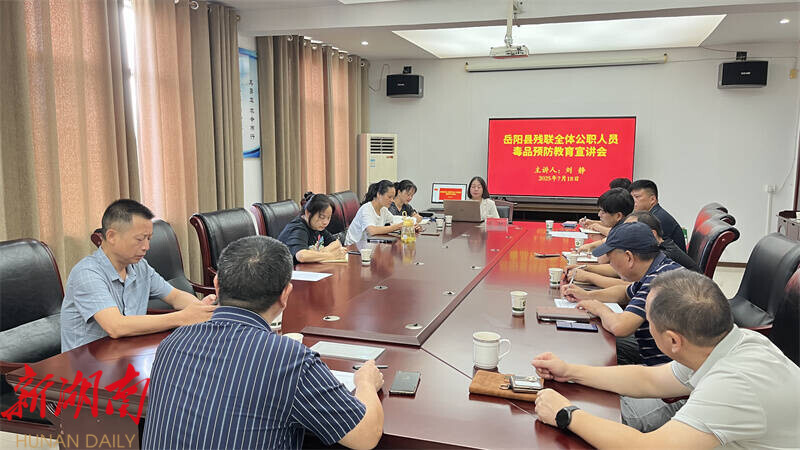 湖南日报·新湖南客户端7月18日讯(通讯员 彭婷) 为进一步增强全体公职人员的禁毒意识和抵制毒品的能力,筑牢禁毒思想防线,7月18日,岳阳县残联组织召开全体公职人员毒品预防教育宣讲会。活动邀请岳阳县禁毒讲师刘静授课,全体干部职工参加学习。