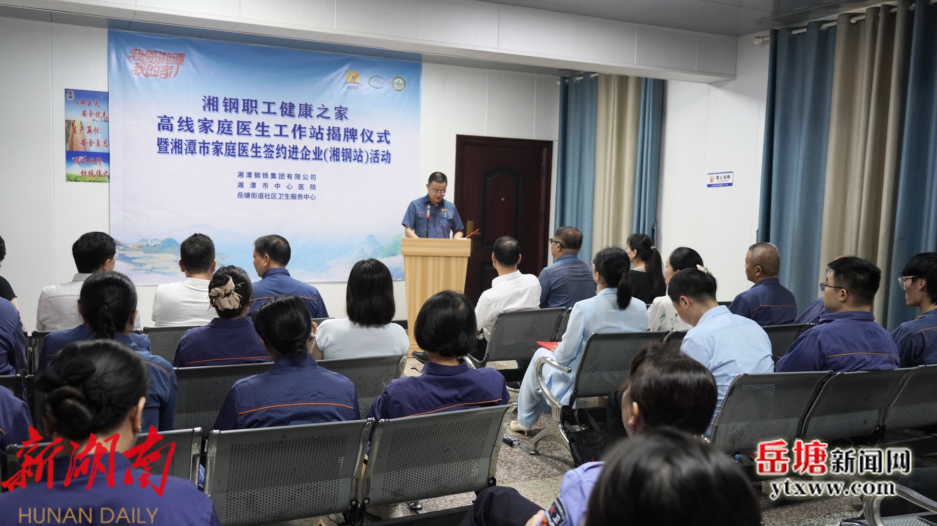 岳塘融媒7月17日讯 (通讯员 郭奕含 杜婧怡)为深入贯彻省委、市委 “三医联动 六医协同” 集成改革,推进省政府“家庭医生签约”重点民生实事项目,7月17日,岳塘区岳塘街道社区卫生服务中心在湘潭钢铁集团有限公司支持下设立的湘钢职工健康之家暨高线家庭医生工作站正式揭牌。