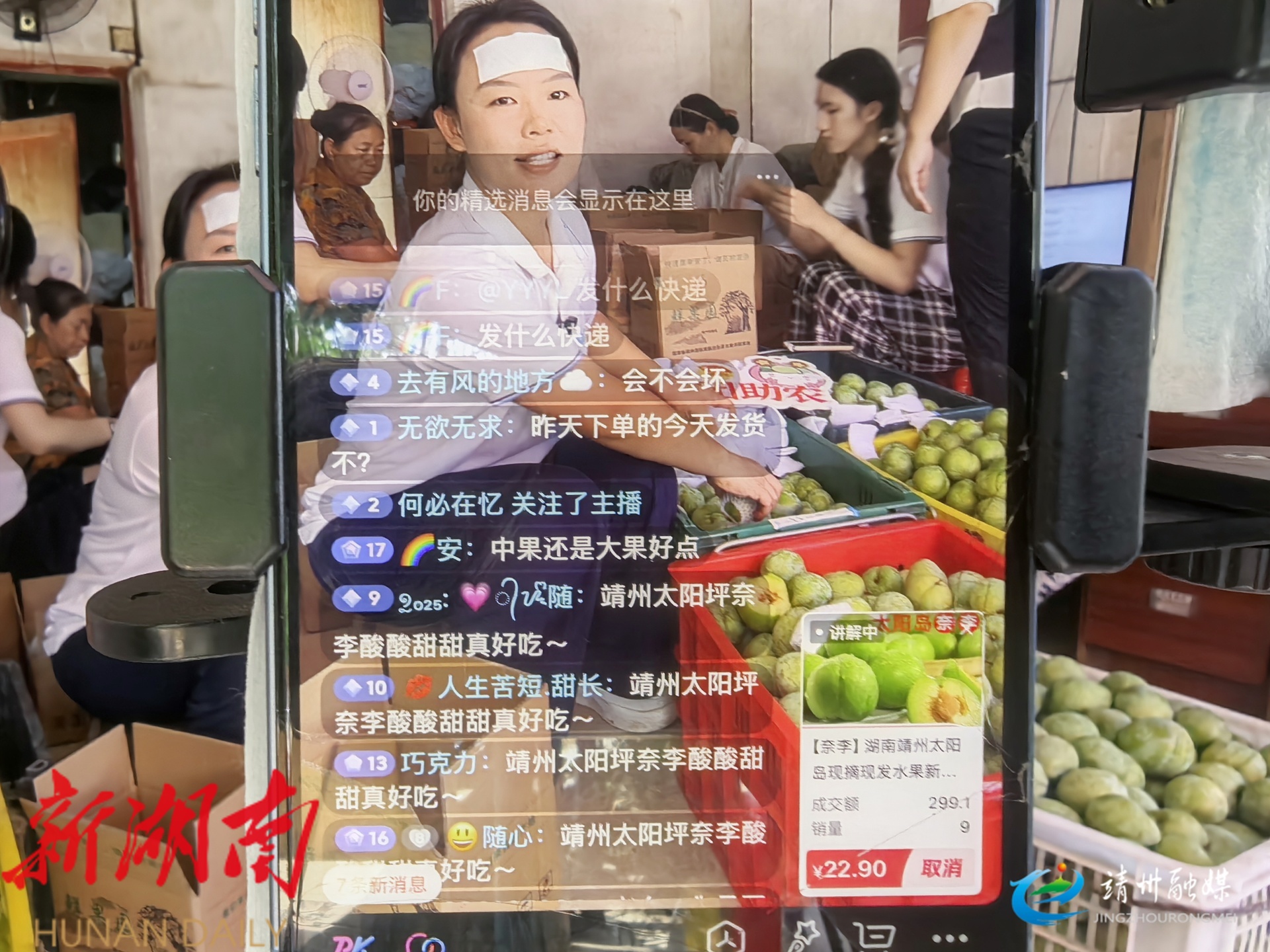 靖州融媒7月18日讯 (记者 周悦伊)“我们的奈李分四个规格,有小果、中果、大果、超大果……”7月17日,共青团靖州苗族侗族自治县委、县妇女联合会携手靖州生活圈网络科技有限公司,在太阳坪乡开展“青耕靖州,团团助农”奈李直播销售活动。
