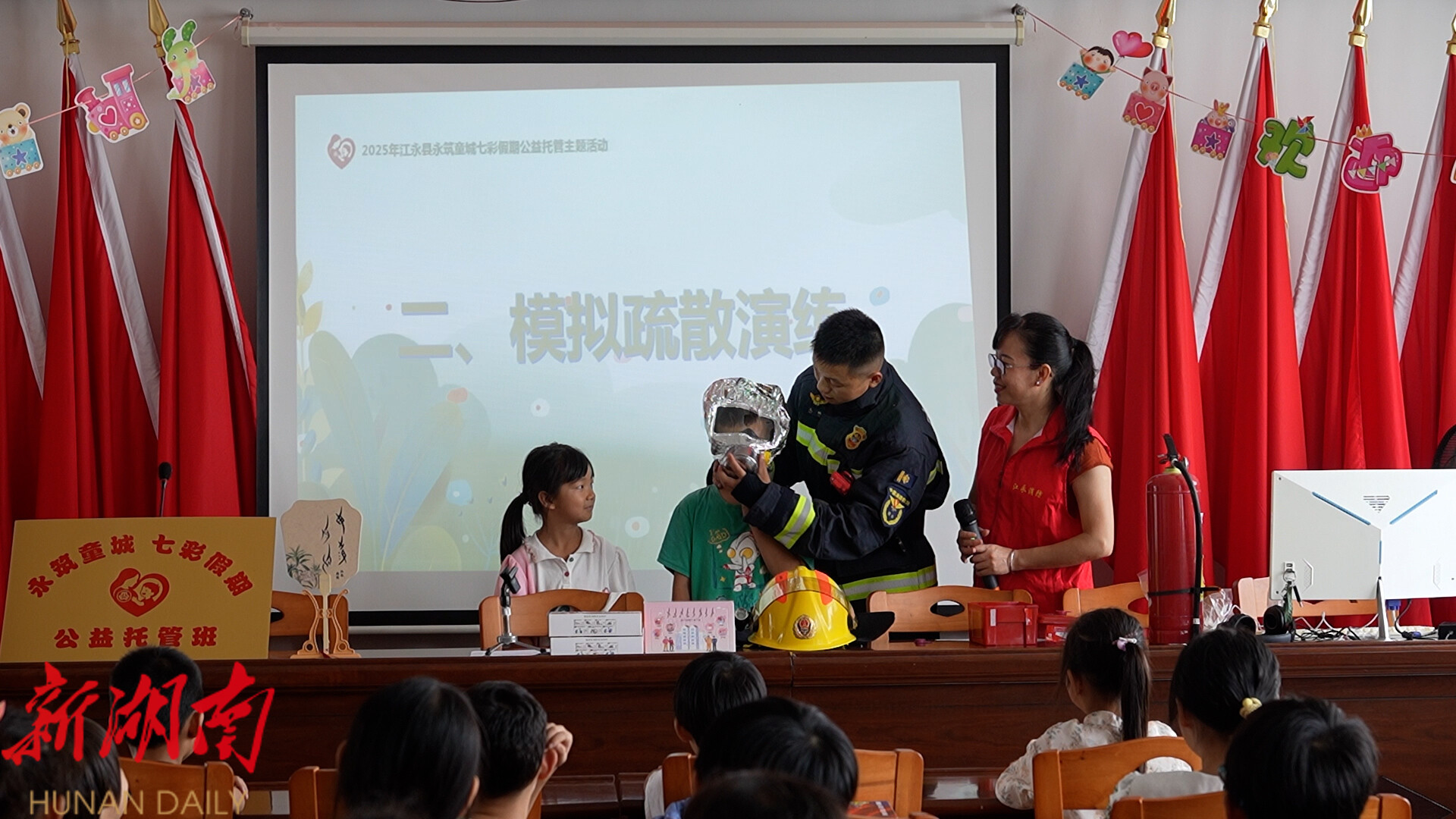 江永融媒7月18日讯(记者 吴雨晴 陈丽华 ) 暑假期间,江永县消防救援大队“瑶蓝”志愿服务队走进江永县各乡镇开展了一场别开生面的暑期公益课堂活动。该活动以“女书童行·安全一夏”为主题,创新性地将非遗女书文化与消防安全知识相结合,为乡村儿童带来了一堂生动有趣的安全教育课。