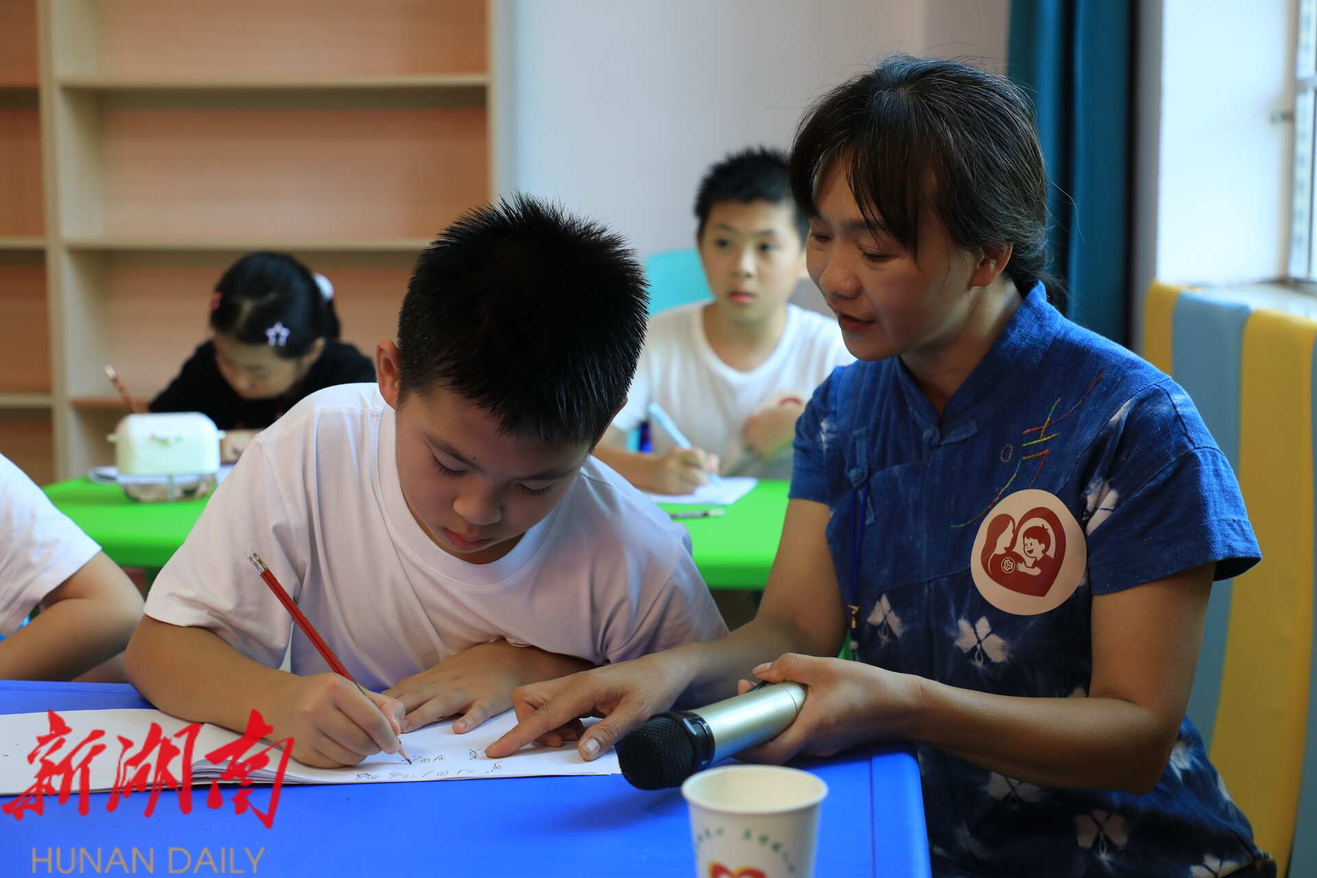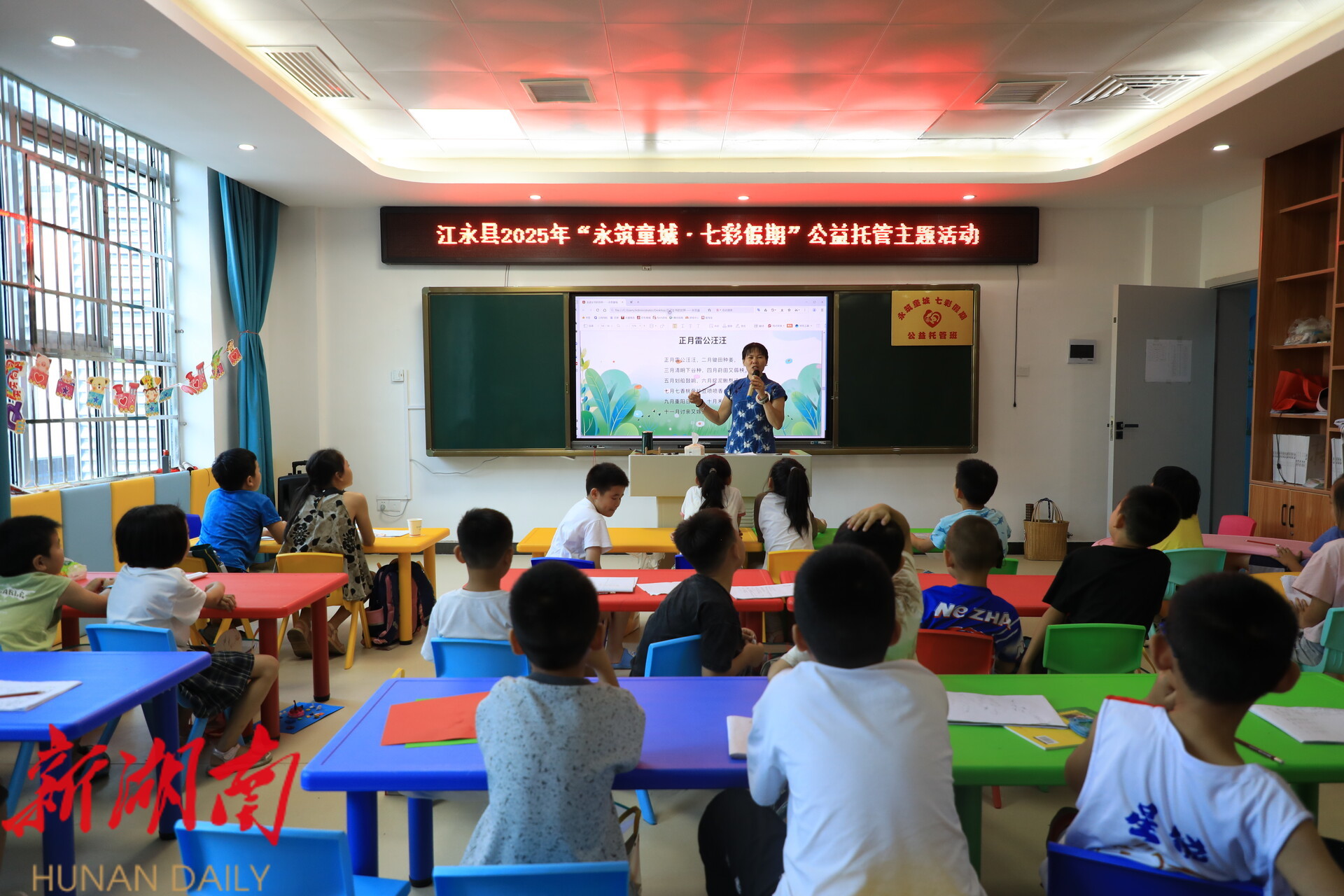 江永融媒7月18日讯(记者 周佳琳) 7月17日,江永县文旅广体局、江永县民政社工站在未成年人保护中心联合开展“永筑童城 七彩假期”公益托管活动,让非遗女书走进社区,为孩子们的暑假添上独特文化亮色。