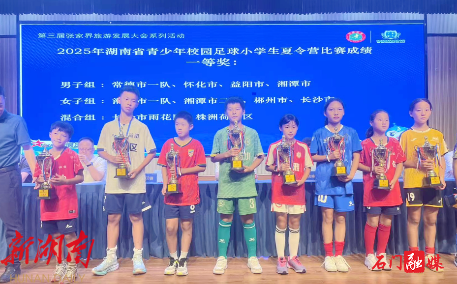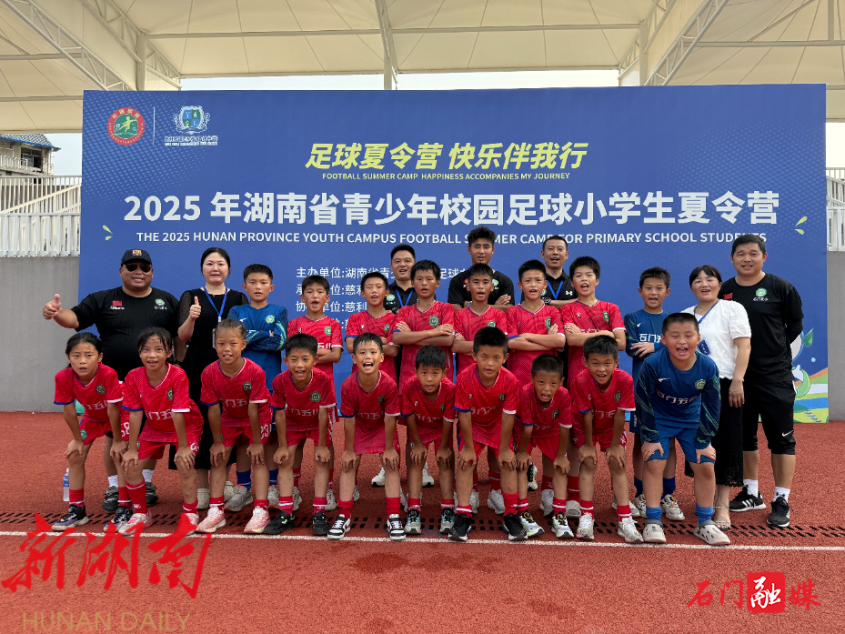 新石门客户端7月18日讯(记者 唐小婷 通讯员侯鹏 谢波 )7月17日,2025年湖南省青少年校园足球小学生夏令营在慈利县落下帷幕,石门县第五完全小学男子足球队代表常德市参赛,凭借精湛球技与顽强拼搏精神,一路过关斩将,最终斩获男子甲组冠军。