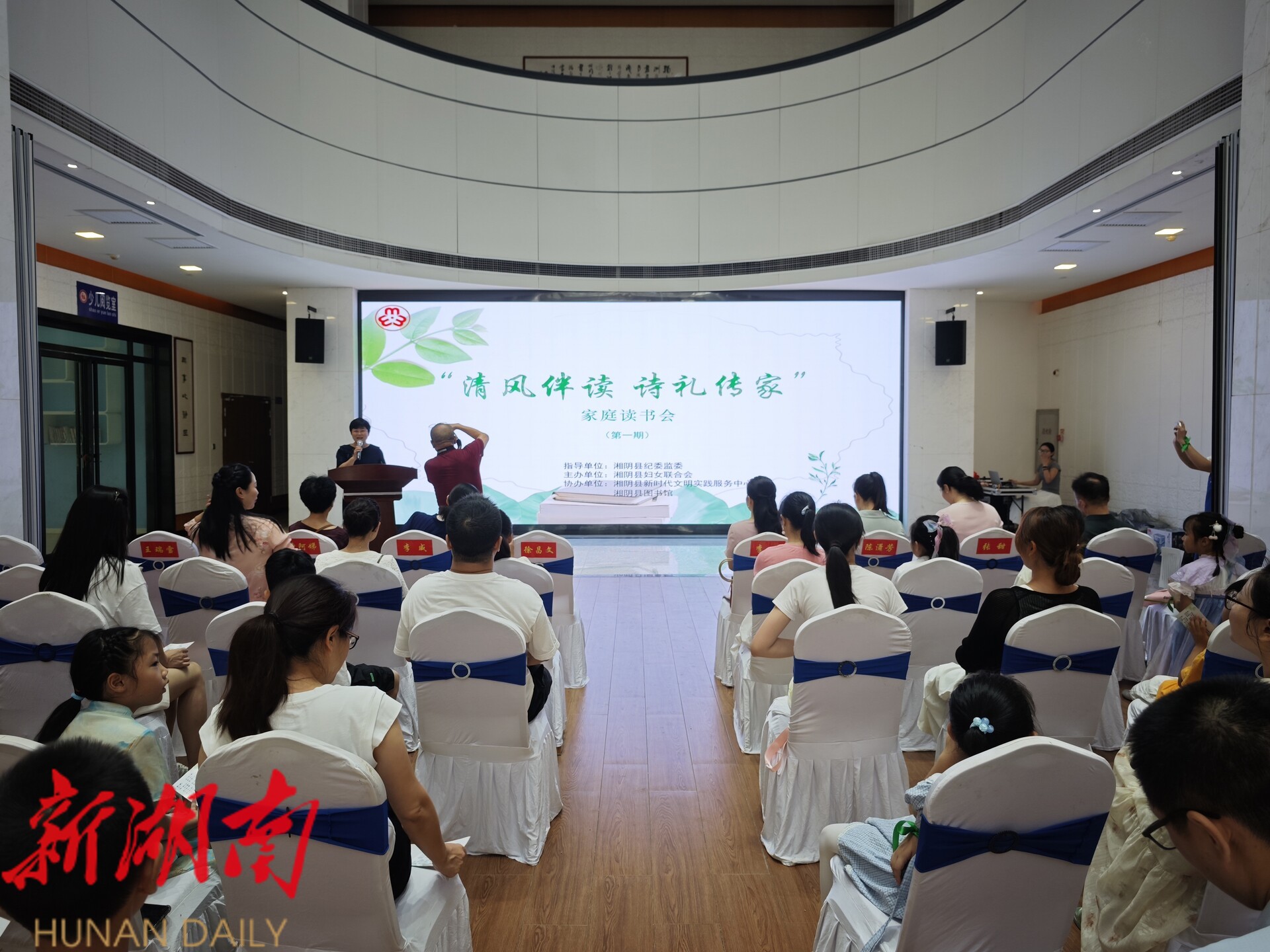 湖南日报·新湖南客户端7月20日讯(通讯员黄家睿) 7月20日,湘阴县举办“清风伴读 诗礼传家”家庭读书会(第一期)。通过亲子共读的形式,传承优良家风,让书香浸润家庭。