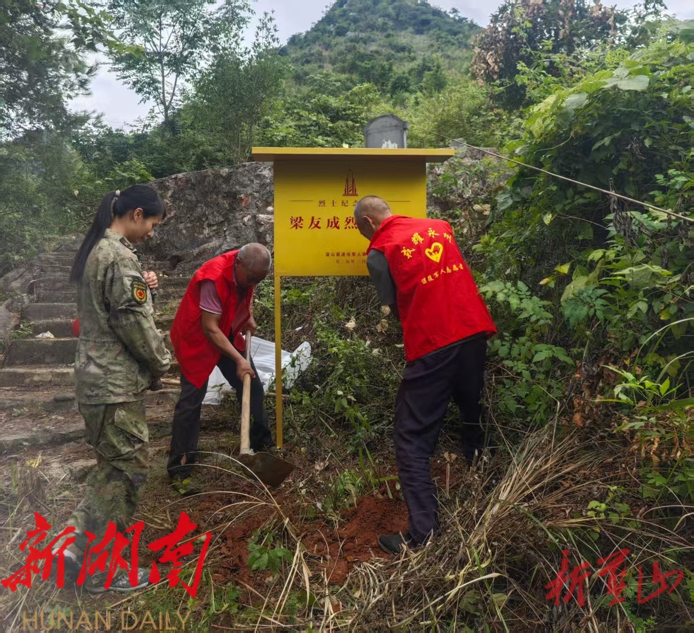新蓝山客户端7月21日讯 (通讯员 刘瑜)7月20日,祠堂圩镇退役军人服务站联合镇村干部、退役军人代表开展烈士纪念设施保护行动,为辖区内1处红军墓及2处烈士墓安装统一规范的保护设施牌,以细致举措守护红色遗产,传承英烈精神。