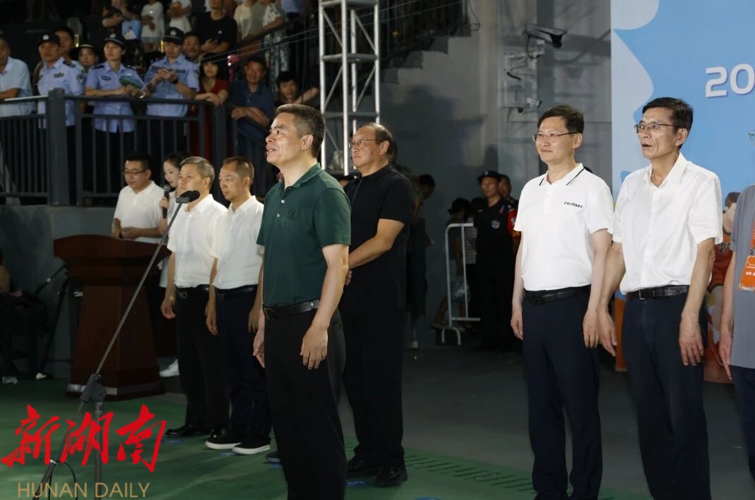 新桂阳7月20日讯 激情的汗水挥洒赛场,拼搏的呐喊响彻云霄。经过8天44场激情四溢的精彩角逐,7月19日晚,“郴品郴味·桂山桂水”2025年湖南省和美乡村篮球大赛(村BA)在桂阳县金叶篮球场圆满闭幕。省农业农村厅党组书记、厅长,省乡村振兴局局长王建球,郴州市委副书记、市长阚保勇参加闭幕式。
