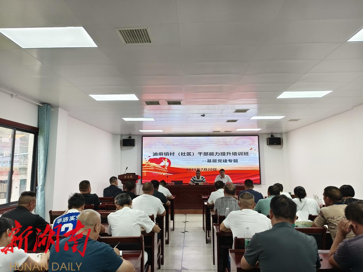 湖南日报·新湖南客户端7月21日讯(通讯员 李佑湘 曹琪)7月20日,永兴县油麻镇举办村(社区)干部基层党建能力提升培训班,全镇各村(社区)党组织书记、组织委员参训。此次培训采用“视频会现场展示+优秀经验分享+专题业务讲解”模式,精准破解基层党建工作重点难点。