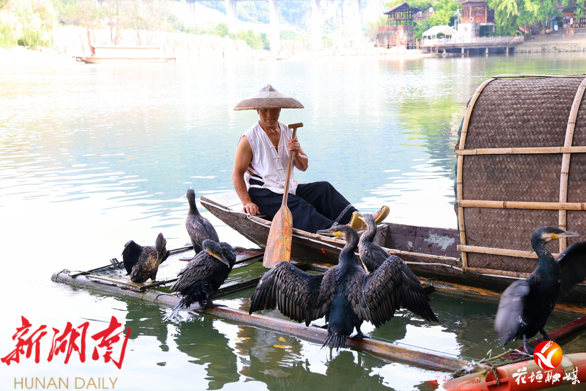 “老伙计们,开饭啦!”罗远扬将切好的鱼片轻轻抛向水面,鸬鹚们早已熟识这老友,如箭般俯冲而下,翅膀搅动热风,发出欢快的鸣叫。
