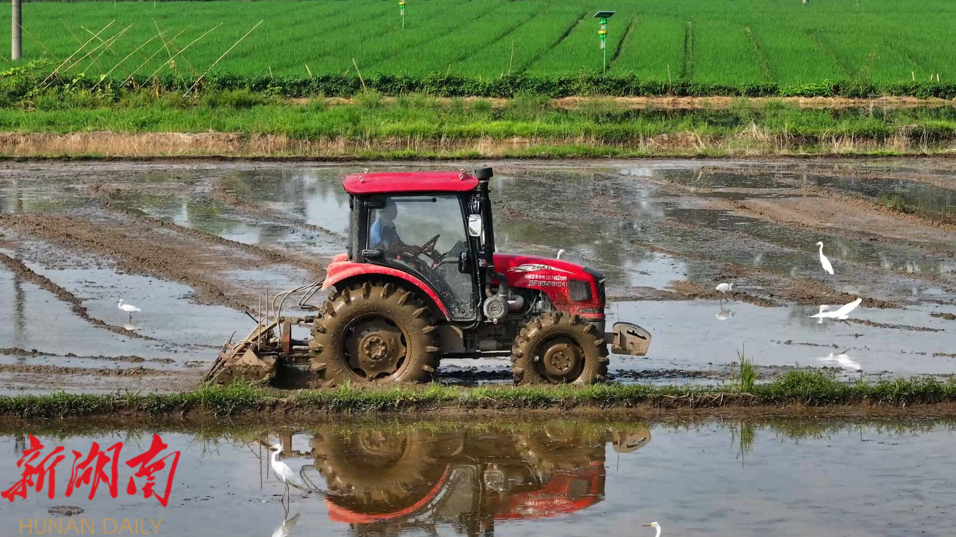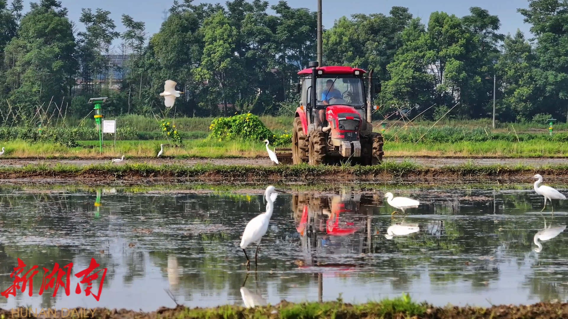 中方融媒7月21日讯 (记者:杨森)7月20日,中方县花桥镇火马塘村水稻种植基地里,晚稻播种前的翻耕工作紧锣密鼓地铺开,翻耕机在田野间来回穿梭,引擎的轰鸣打破了清晨的宁静,唤醒了整片土地的活力。上百只白鹭追随着翻耕机的轨迹,时而舒展翅膀在低空自由翱翔,时而轻盈落下,在新翻的泥土旁悠然踱步、嬉戏打闹,溅起的水花映着晨光闪闪发亮。翻耕机犁出的新鲜泥土里,藏着泥鳅、小鱼和各类小虫,这成了白鹭们最丰盛的早餐,啄食的动作轻巧又迅捷,仿佛在与农人共享丰收前的馈赠。田野间处处透着自然与劳作的和谐,每一寸光影都写满了夏日的生机与希望。