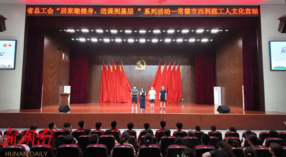 西洞庭融媒 7 月 16 日讯(记者:张雅洁) 为全面提升广大职工群众的身体素质,发挥工会在全民健身中的重要作用,满足职工群众的多元化健身需求,7月16日,省总工会“居家趣健身 送课到基层”系列活动走进常德市西洞庭工人文化宫,将体育健身活动送到职工“家门口”。企业职工、社区工作者、居民代表等数百人参与。