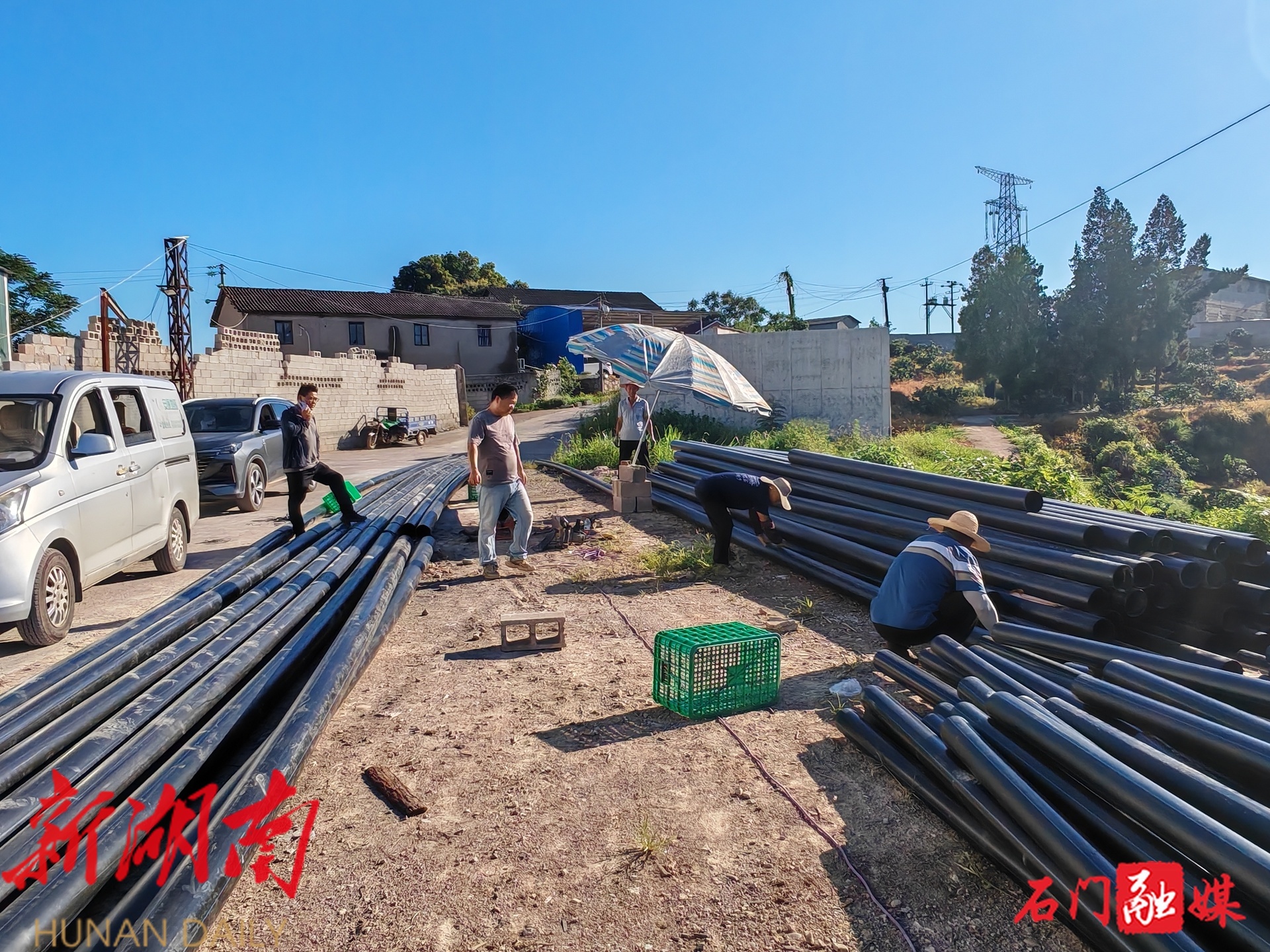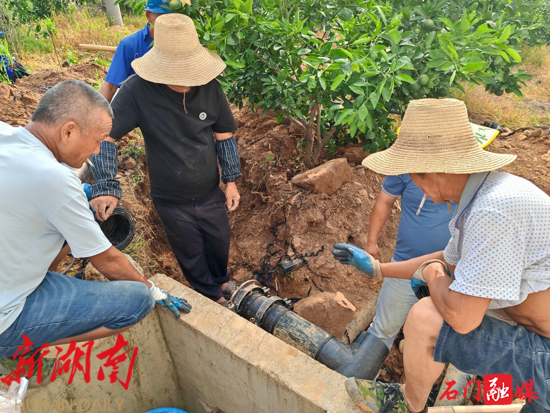 群众有需求,党员有行动。了解情况后,社区迅速响应,成立党员突击队,带领群众一起挖沟渠、架电线、安装水泵、加装变压器,彻底打通灌溉“最后一公里”;同时配套电力改造,架设一条200米长的专用电缆,直接通到泵站,方便农户就近接电灌溉,确保柑橘在关键生长期喝上“及时水”。