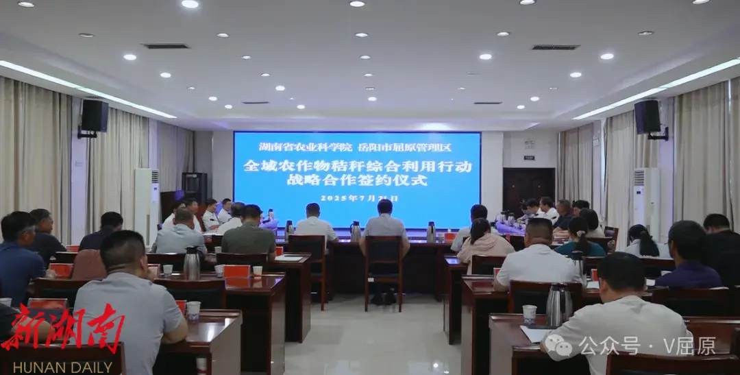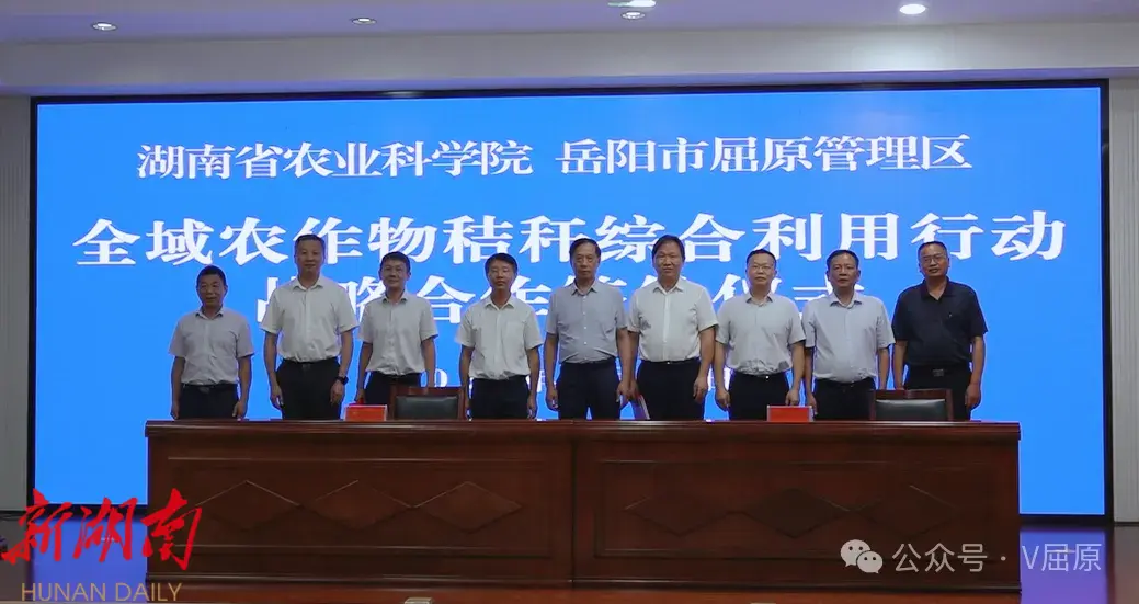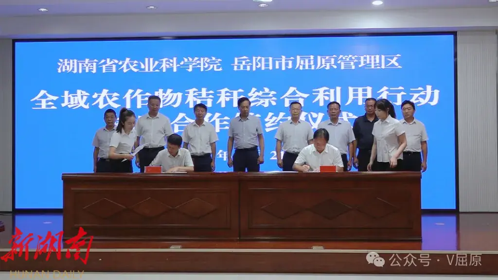 湖南日报·新湖南客户端7月22日讯(通讯员:姜瑶)7月21日,湖南省农业科学院与岳阳市屈原管理区全域农作物秸秆综合利用行动战略合作签约仪式成功举行。中国农业科学院原党组书记陈萌山,湖南省农业科学院党委委员、副院长,湖南杂交水稻研究中心党委书记许靖波,岳阳市人民政府副市长陈阁辉,湖南省农业农村厅农业资源保护与利用处处长彭晋勇,屈原管理区党委书记向科军,区党委副书记、管委会主任沈小星,区党委委员、管委会副主任曹正平,区管委会副主任陈学礼出席活动。中国农业科学院、省农科院相关负责人,区直相关部门及各乡镇负责人、企业代表、种粮大户代表参加。