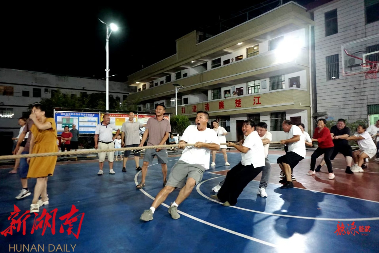 7月21日晚,楚江镇政府大院灯火通明,4支拔河代表队正在进行激烈角逐,“一二!一二!”的号子声如鼓点般齐整,村民们紧攥麻绳拼尽全力,现场观众呐喊助威此起彼伏。最终,冲头村代表队获得一等奖,莲塘村代表队获得二等奖,楚江村代表队获得三等奖。