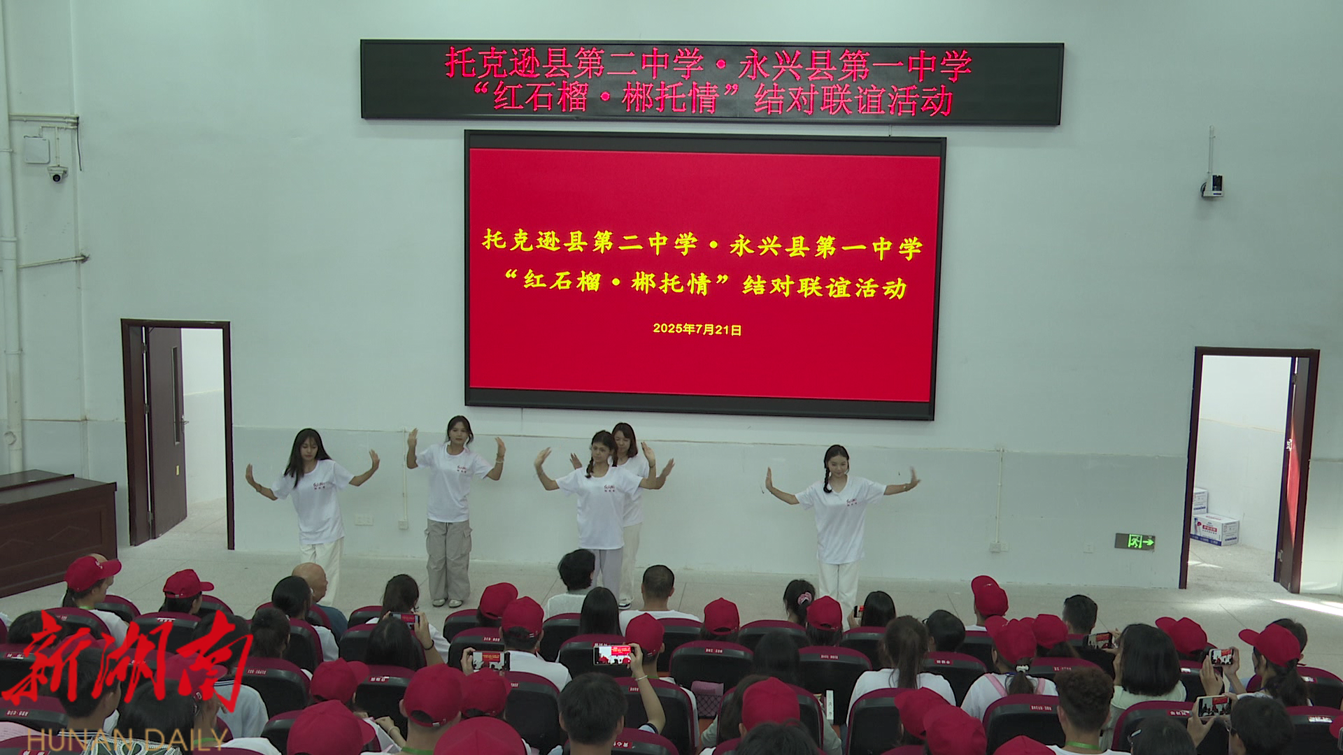 湖南日报·新湖南客户端7月22日讯(通讯员 刘辉)7月21日,托克逊县第二中学与永兴县第一中学开展“红石榴·郴托情”结对联谊活动。