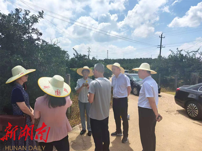 湖南日报·新湖南客户端7月22日讯(通讯员 李松) 近日,湖南省贸促会党组书记、会长杨爱云,省贸促会国际联络部部长郑红艳一行来岳阳县考察调研,旨在深入了解岳阳县金盆柚种植及发展情况。市贸促会会长傅前洲,副县长刘炀和县贸促会相关负责人参加。
