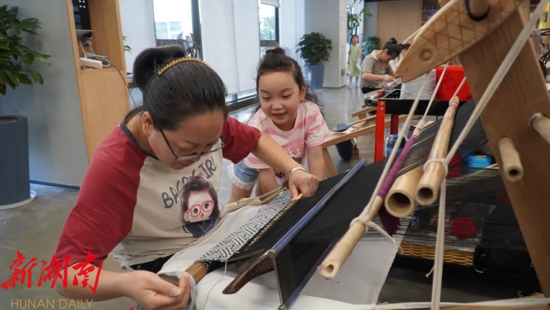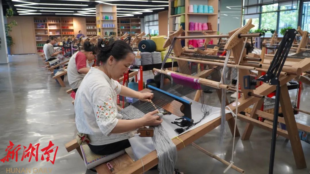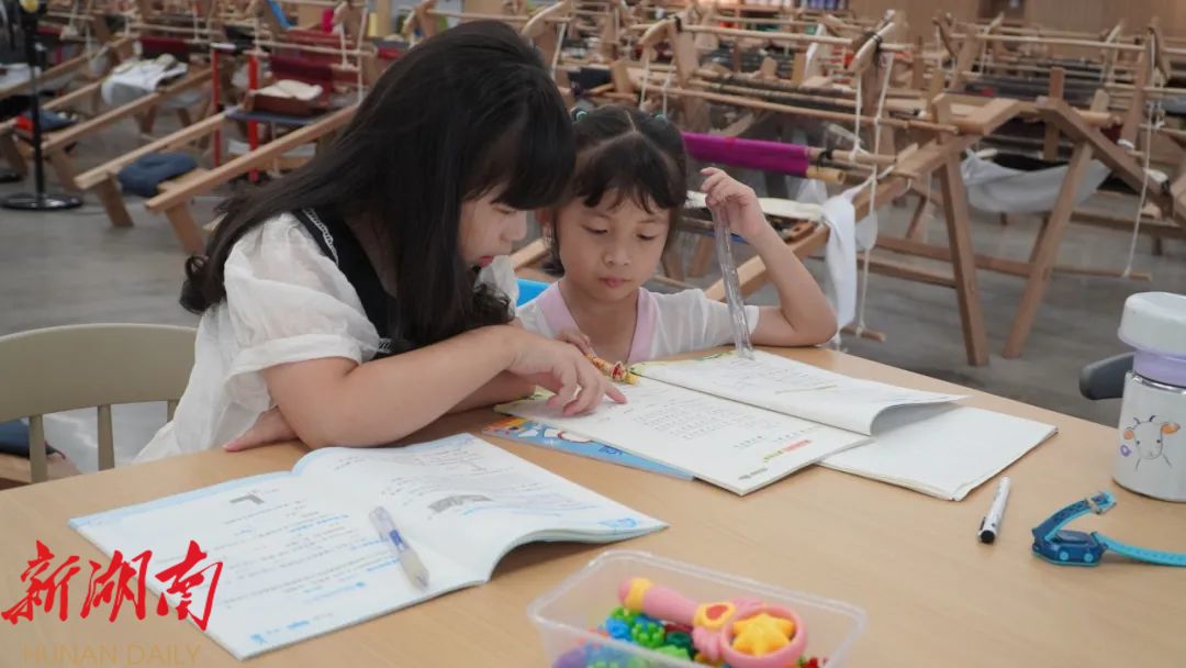 湖南日报·新湖南客户端7月21日讯(通讯员 解雯惠 欧媛) 正值暑期,近日,记者走进位于永定区沙堤街道的张家界乖幺妹土家织锦文化创意园,看见女工们在织机前认真工作,她们的孩子则在不远处的长桌上写作业、读绘本、玩玩具。