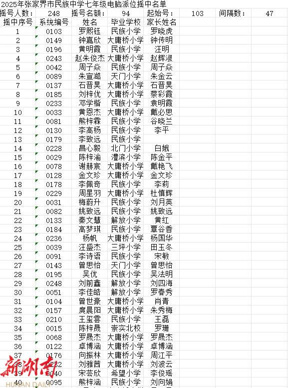 电脑派位名单出炉,事关永定中心城区中小学生入学
