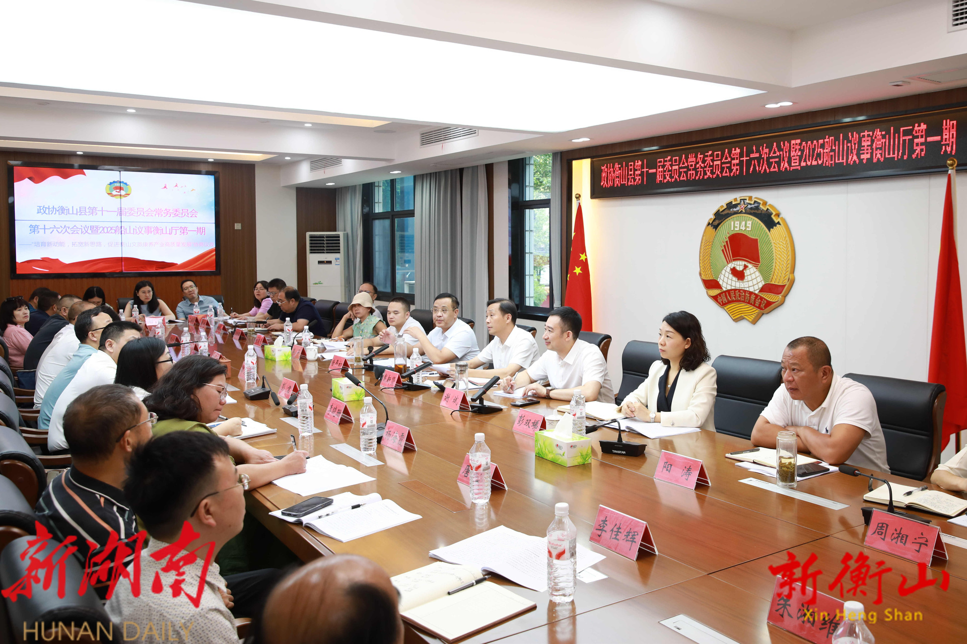 新衡山客户端7月22日讯(记者:周彭斌 周继晋 )7月22日,衡山县政协第十一届常委会第十六次会议暨2025船山议事厅衡山分厅第一期举行,围绕“培育新动能,拓宽新思路,促进衡山文旅康养产业高质量发展”协商议政。衡阳市政协副主席、衡山县委书记戴新贤出席会议并讲话。县领导谢斌、唐年初、彭双娣、蒋平、阳涛、胡文星、周湘宁、王朝晖、宋少峰参加。