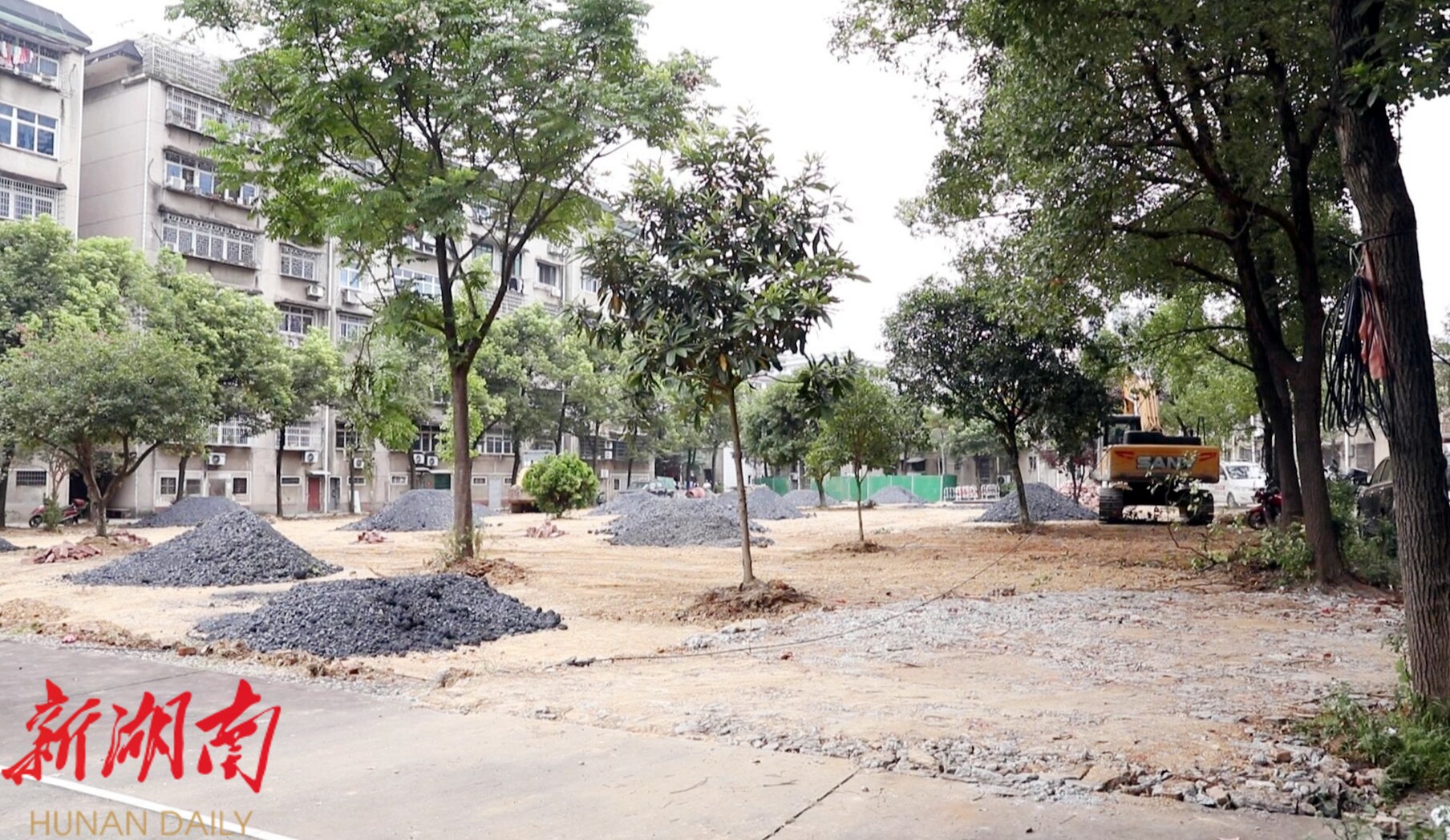 记者潘雁平说:“我现在所在的位置是布溪工商银行家属区,这里正热火朝天地建设当中。杂草丛生的荒地即将变身80个新车位;老旧的下水管道也迎来了全面换新;还有凉亭、羽毛球场、篮球场等配套设施……想想都觉得幸福。改造现场进度怎么样?一起去看看。”