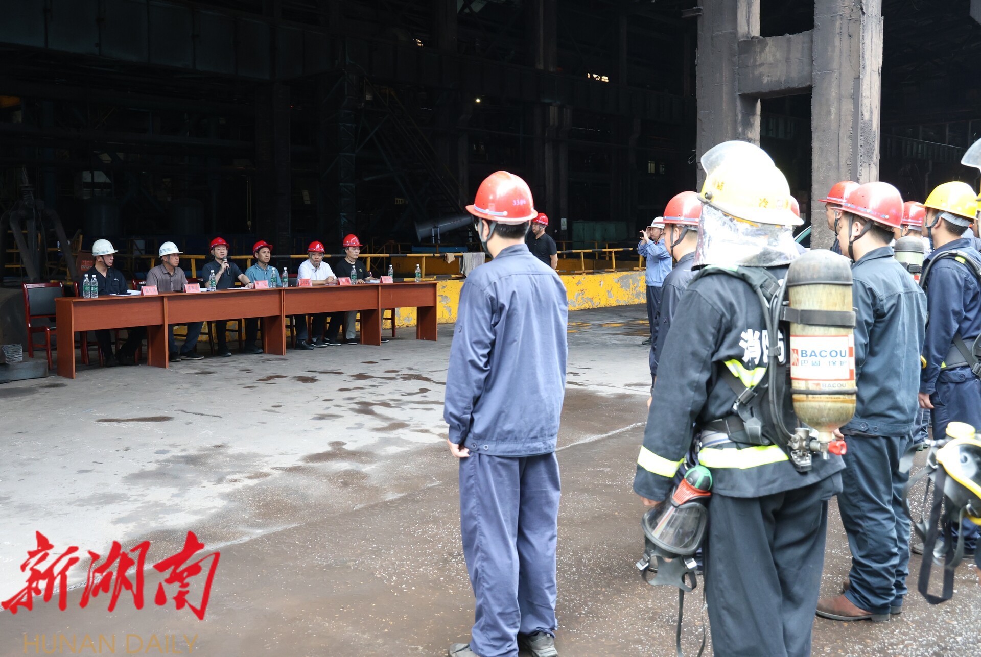 湖南日报·新湖南客户端7月22日讯(通讯员 朱俊峰)21日,冷钢组织开展炉缸烧穿事故综合应急演练。演练模拟炼铁厂5号高炉炉缸烧穿,导致铁水流出,造成人员烫伤。工作人员第一时间将高炉紧急休风,打开炉顶放散阀,隔断煤气,并将所有人员紧急疏散至安全地带。演练现场,现场救援、警戒保卫、医疗救护、信息保障、物资保障、善后处理6个组紧密协作,默契配合,演练取得圆满成功。这次演练提高了员工处置事故和自救互救能力,达到了预期效果。