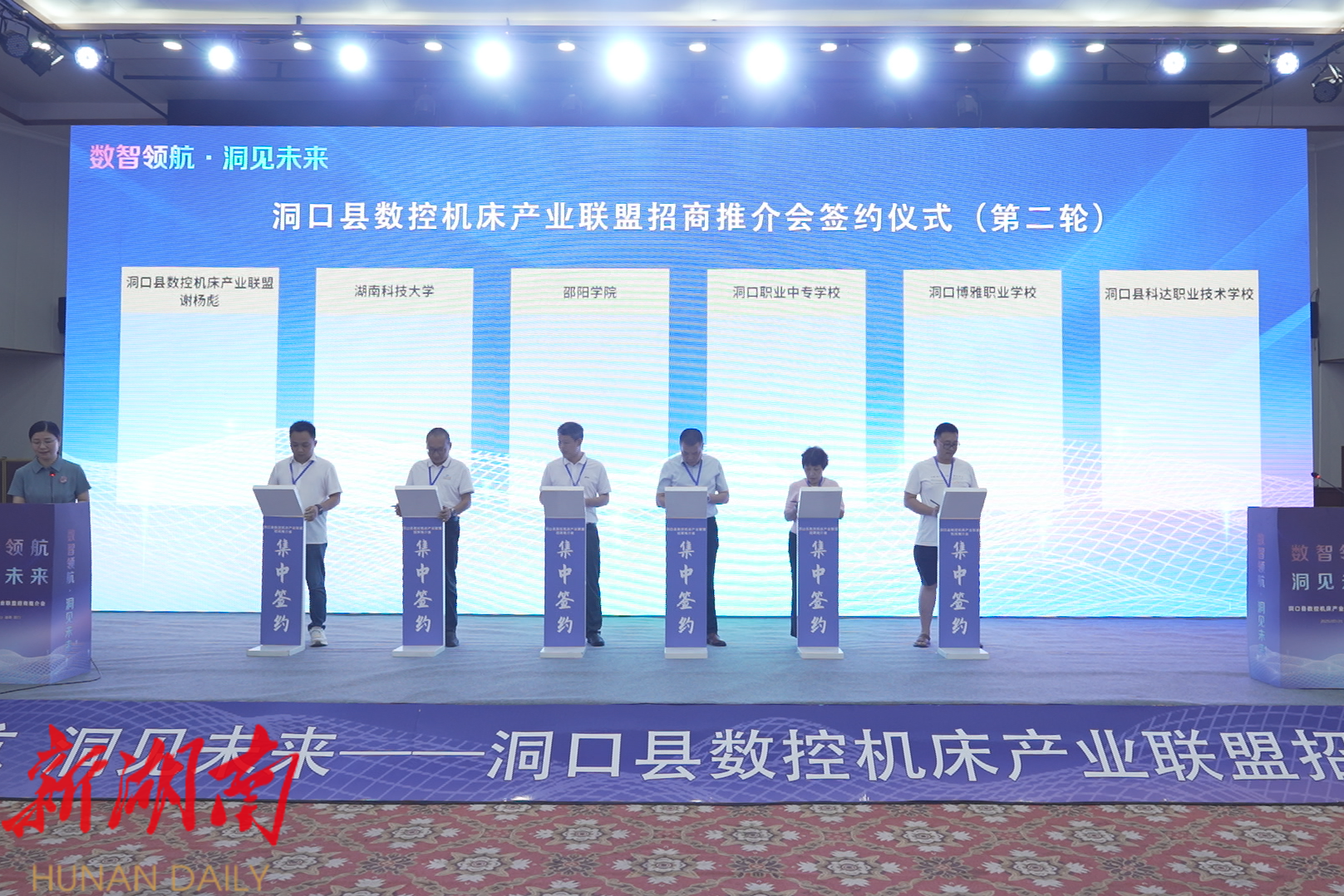 签约仪式上,东莞市煜东机械制造有限公司、东莞市浩兴精密机械有限公司、湖南泽禾精密机械有限公司、云南台力精密机械有限公司、通海县润华铸造厂、东莞市米克尔精密机械有限公司等6家数控机床企业与洞口经开区签约;20多家金融机构、职业教育机构、物流企业与数控机床企业签订合作协议。