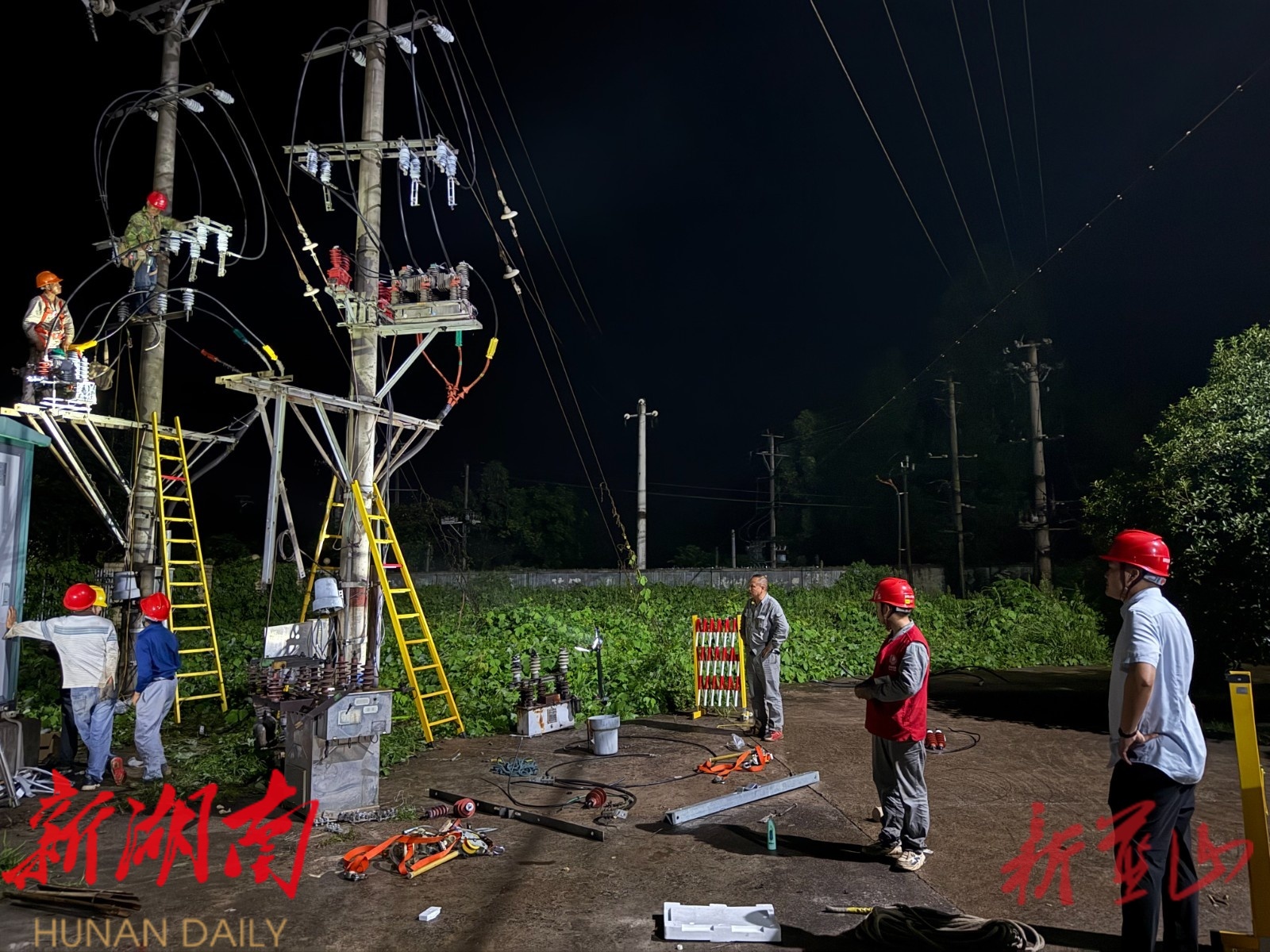 新蓝山客户端7月23日讯 (通讯员 杨翠强)“10千伏螺太线负荷已由10千伏毛锰线转供,可以开工!”7月22日凌晨1时许,当大多数居民已进入梦乡,国网蓝山县供电公司新圩供电所的工作人员却在10千伏螺太线1号杆周围紧张有序地开展消缺作业。他们以“零点作业”的方式,在居民用电“零感知”的情况下,成功消除了螺太线1号杆开关线夹发热的安全隐患,用实际行动守护着辖区居民的清凉夏日。