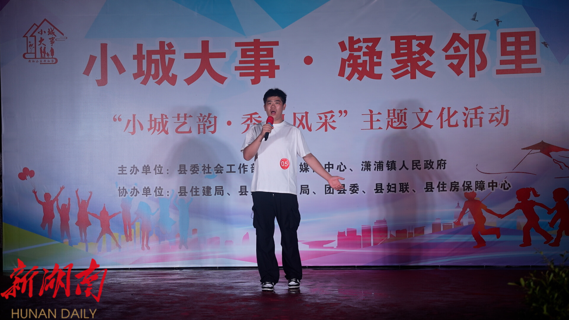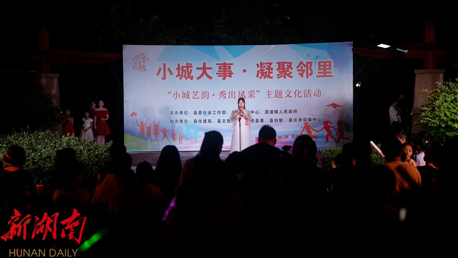 晚上7点半,小区广场热闹非凡,舞台上,活力十足的孩子翩然起舞,精神抖擞的老者吟唱悠扬的瑶族古调,还有诙谐幽默的相声、独具特色的女书山歌以及各类乐器演奏等轮番上演,观众们一边欣赏节目,一边热情交流,欢声笑语中洋溢着浓浓的邻里温情。