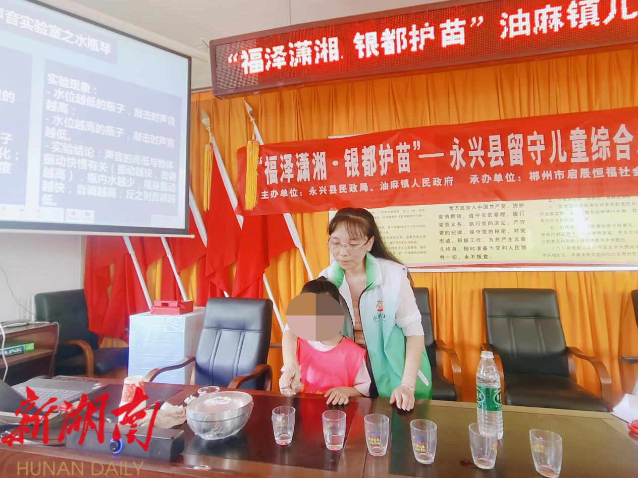 湖南日报·新湖南客户端7月24日讯(通讯员 曹康 王赛艳 李彦霖)7月23日,永兴县油麻镇开展以“探索声音魔法,开启科学之旅”为主题的“福泽潇湘,银都护苗”关爱留守儿童活动,旨在通过一系列趣味声音实验和科普活动,丰富当地留守儿童暑期生活,激发孩子们对科学知识的探索兴趣,给予他们关爱与陪伴。