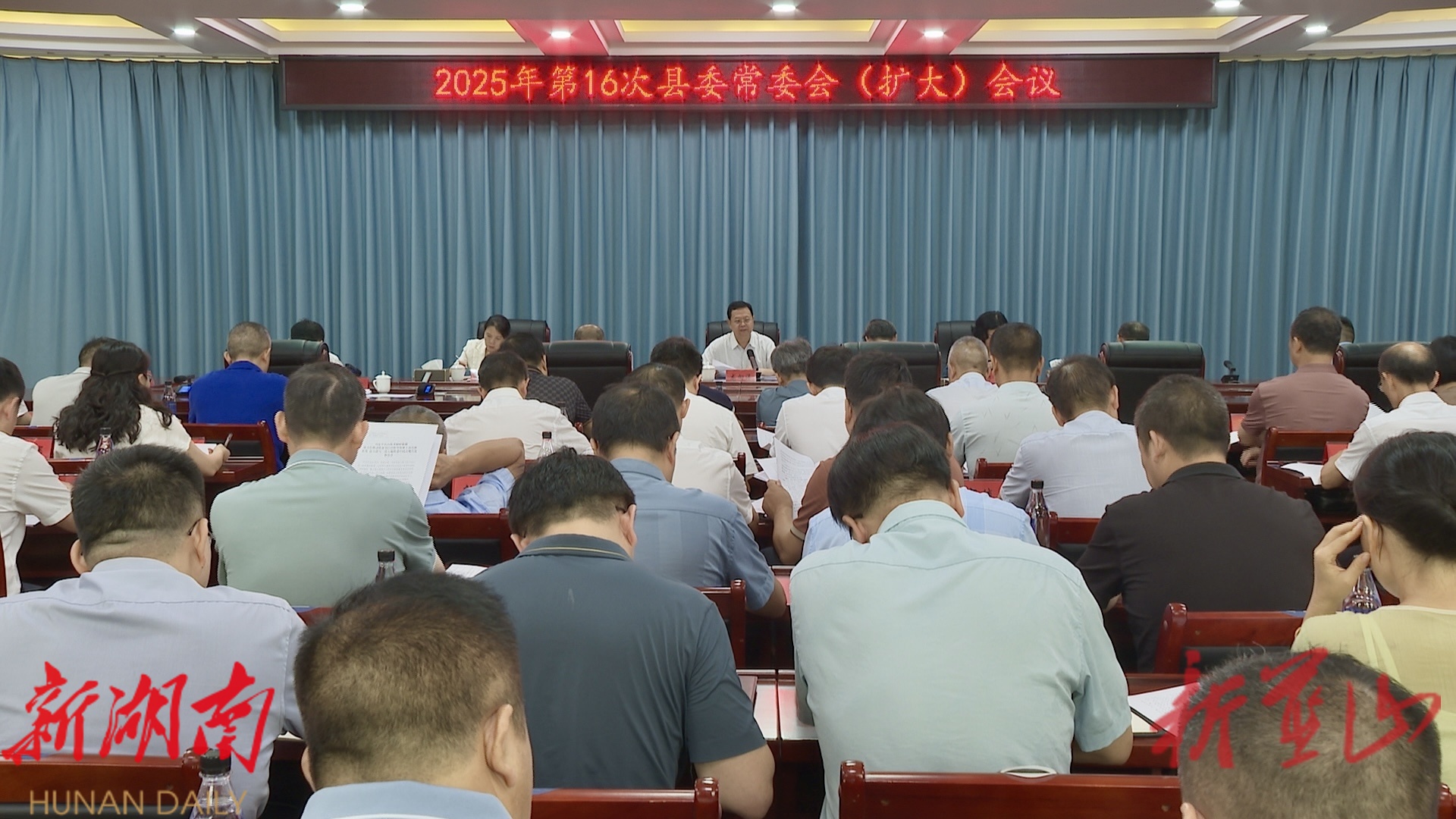 新蓝山客户端 7月23日讯 (通讯员 段祎)7月23日,蓝山县委书记龙向洋主持召开2025年第16次县委常委会(扩大)会议,传达学习习近平总书记近期的系列重要讲话、回信和文章精神;分析研判2025年上半年全县意识形态工作;听取蓝山县巩固拓展脱贫攻坚成果同乡村振兴有效衔接工作情况汇报;审议《蓝山县2025年乡村振兴战略实绩与落实耕地保护和粮食安全责任制考核工作常态化调度方案(送审稿)》等文件。