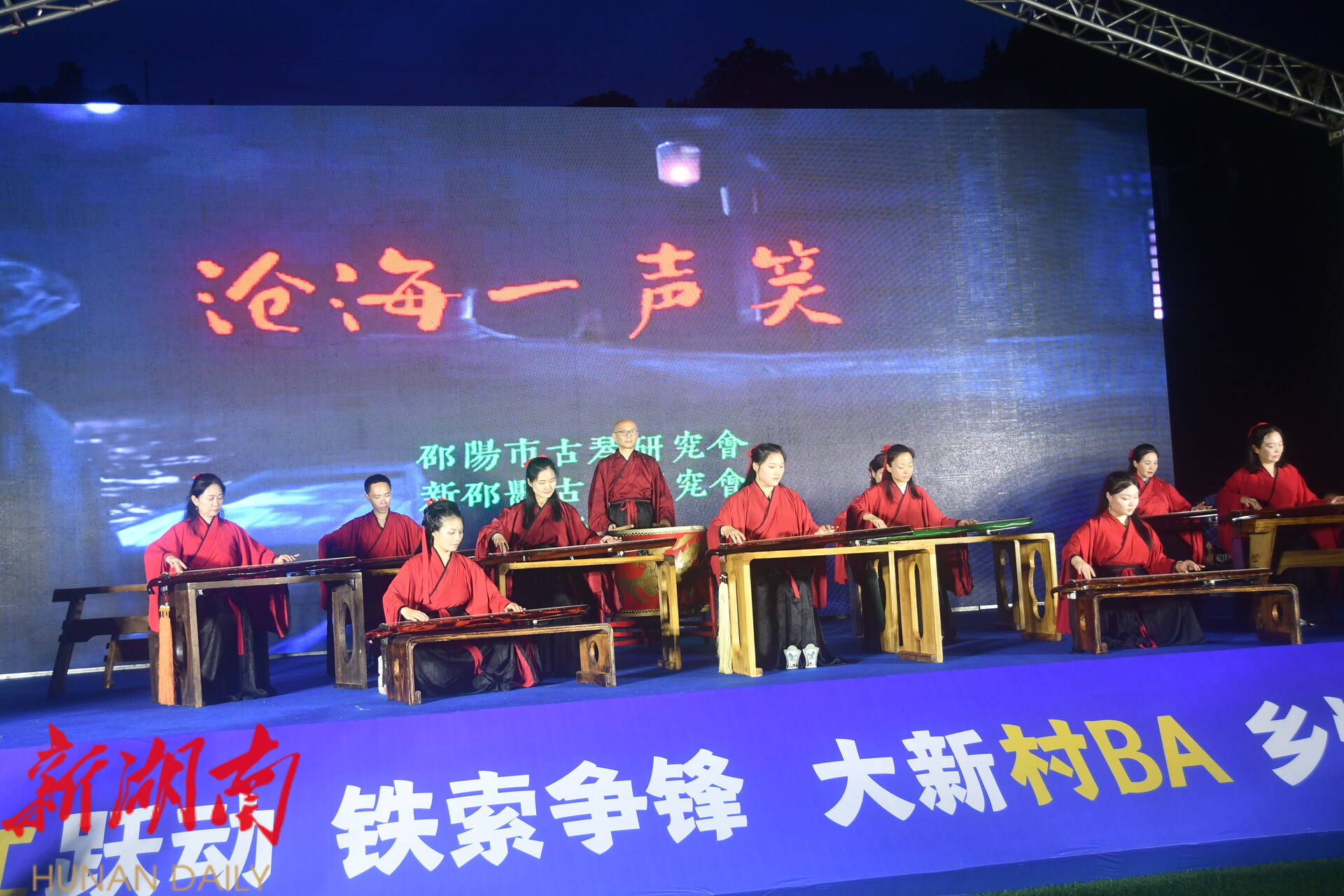 当晚的开幕式暨和美乡村文艺汇演上,古琴演奏、歌曲、舞蹈、快板、长绸柔乐球等节目轮番上演,展现了以篮球为媒、以文艺为桥的“和美”大新新风采。新邵本土知名歌手、2024年央视星光大道年度亚军获得者石冬现场激情献唱,更是将演出推向了高潮。