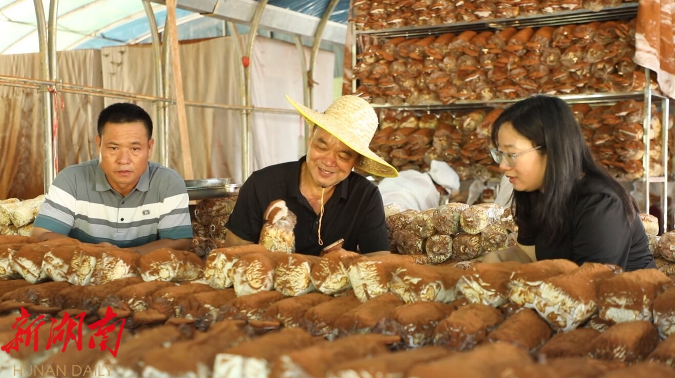 蒋土强是汉下村村民,曾从事建筑装修。2020年返乡在家试种灵芝,2023年成立公司规模种植。这不仅为他带来丰厚收益,也为当地村民提供就近务工岗位。“ 一个人一百块钱一天,工作就是八个小时,都是手工活,早上八点钟上班,下午五点钟下班,回去家里的事情也可以兼顾,我还种了很多玉米,红薯、花生、豆子,家里还养了二十只鸡。 ”宁远县保安镇李巳村村民王连香开心地说道。