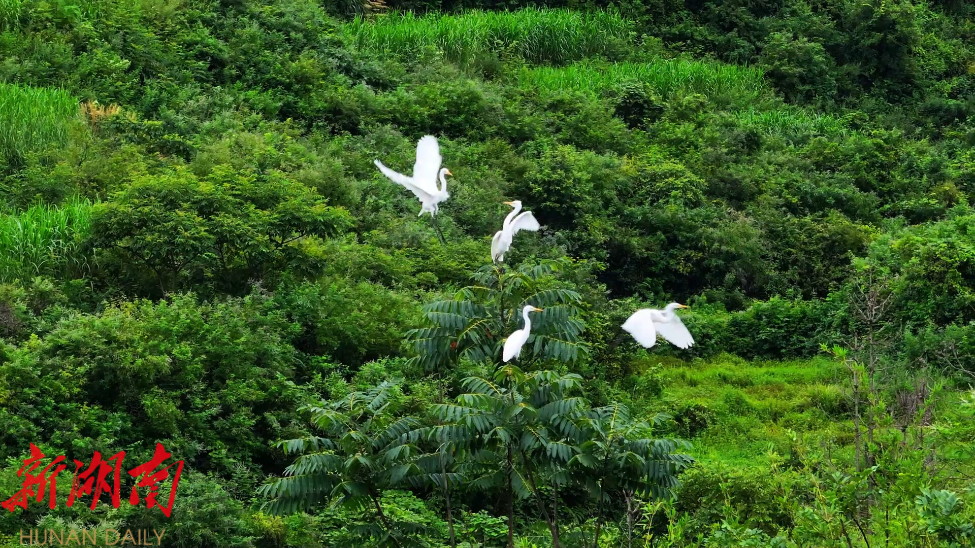 中方融媒7月24日讯 (记者:杨森 ) 7月23日,中方县花桥镇洞竹山村山林间出现一群白鹭,这些白鹭主要栖息在村旁的山林和田野间。它们时而在林间展翅飞翔、嬉戏遨游;时而停落在树枝上,低头整理羽毛,动作轻柔;时而站立在树冠,观察着周围环境,形成了一幅人与自然和谐共处的画面。