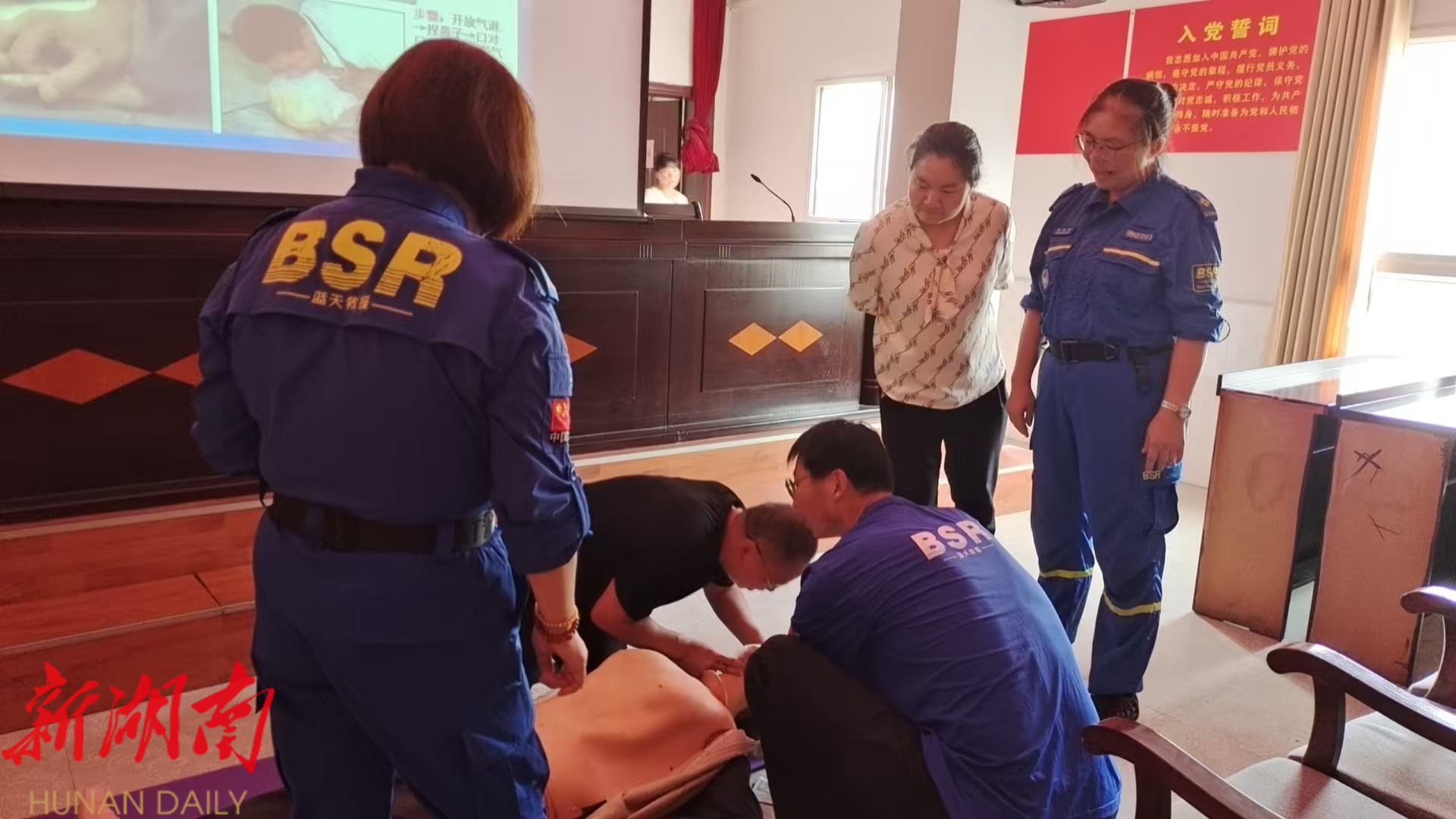 活动特邀市蓝天救援队的专业人员开展防溺水安全知识培训。他们用通俗易懂的语言,结合近年来发生的真实溺水案例,以案说法、详细讲解了水库、池塘、河流、沟渠等野外水域的复杂性与危险性。在实践操作环节,讲师通过理论与实践相结合的方式,详细讲解了心肺复苏的操作步骤、动作要领以及注意事项。讲解完毕后,还邀请街道及村、社区干部上台手把手教学,及时纠正错误动作,确保大家真正掌握这一救援技能。