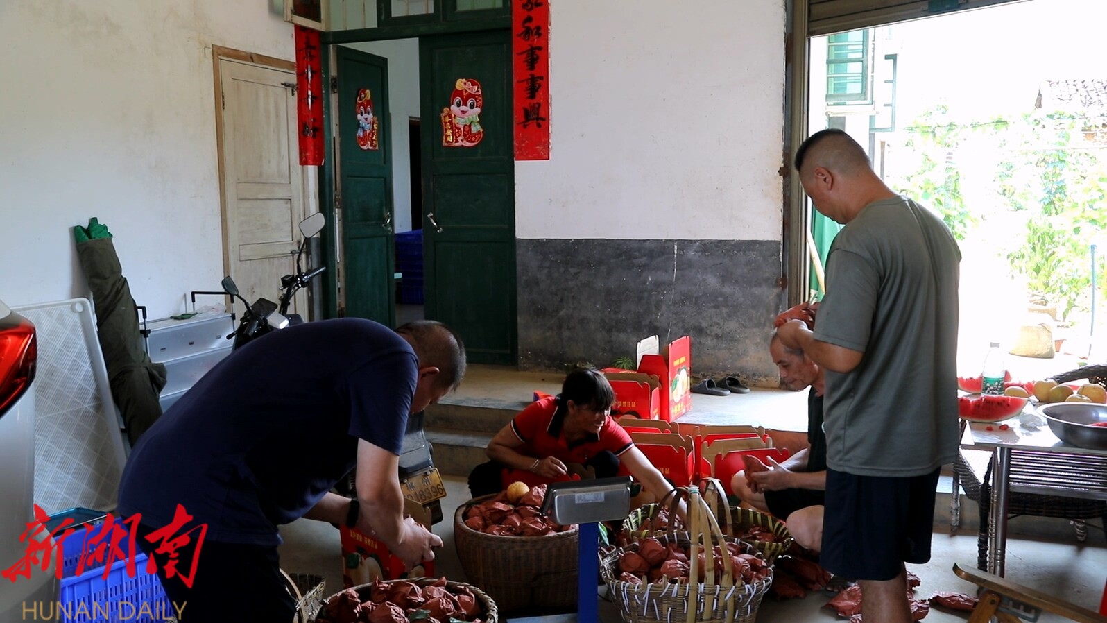 湖南日报·新湖南客户端7月24日讯(通讯员 王杰勇 郭军 欧阳梅芳)盛夏时节,永兴县鲤鱼塘镇矮塘村的500多亩翠冠梨陆续上市,当地果农忙着将新鲜采摘的梨子进行包装销售,现场一派繁忙。