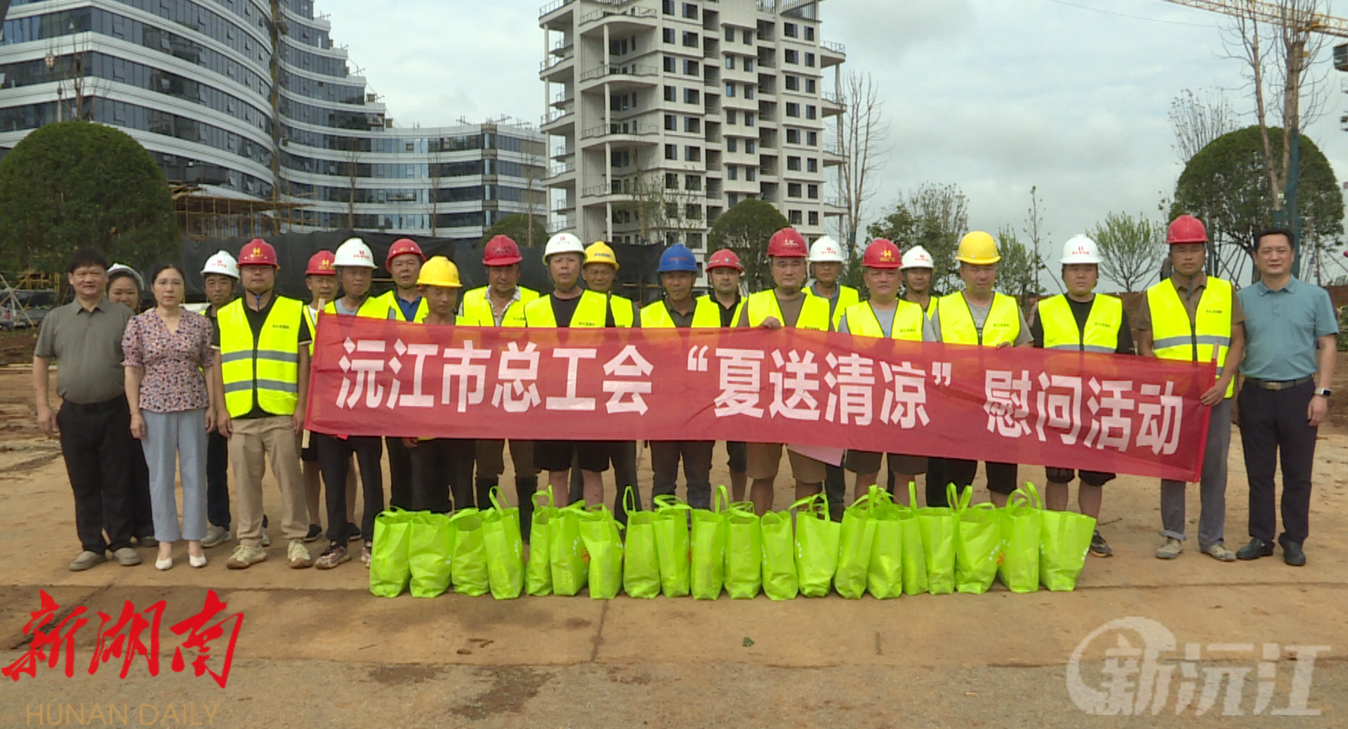 新沅江客户端7月24日讯 (记者 朱子豪)7月24日,沅江市总工会前往辉达·温德姆酒店开展“夏送清凉”慰问活动,为项目建设者送去一份清凉。市人大常委会副主任、市总工会主席郭云出席活动。
