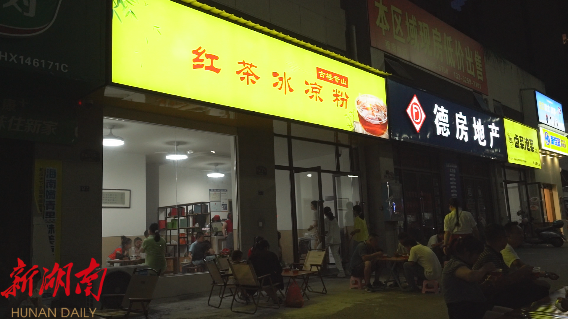 奇山红茶凉粉店负责人肖奇山表示,将茶产业与传统美食相融合研发的红茶凉粉备受青睐。有不少客人远道而来,专门来品尝红茶凉粉,每晚能卖出800碗左右。现在,红茶凉粉不仅成为洞口的夏日名片,更带动了当地“清凉经济”的蓬勃发展。