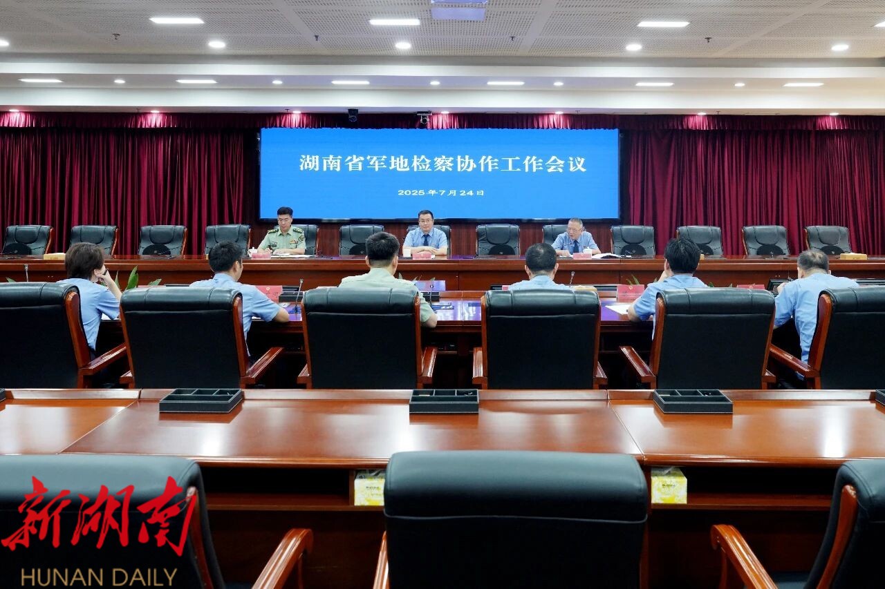 新湖南客户端7月25日讯(通讯员 杨叶芳) 7月24日,湖南省人民检察院、解放军长沙军事检察院联合召开湖南省军地检察协作工作会议。省检察院党组副书记、副检察长熊文辉,解放军长沙军事检察院检察长杨建魁出席会议并讲话。省检察院检委会专职委员罗青主持会议。