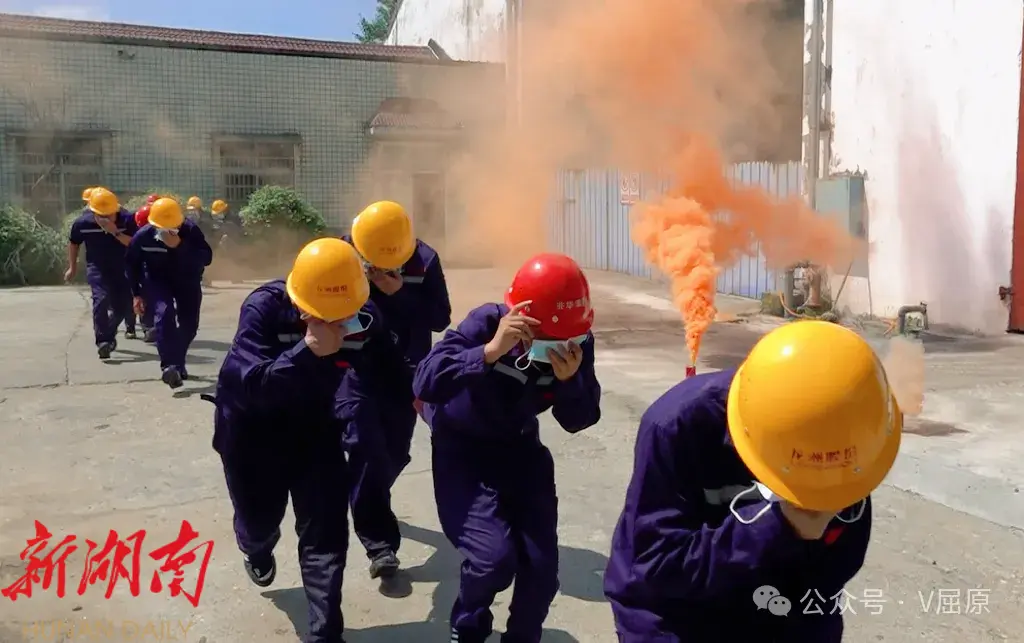 本次演练采取“知识培训+现场实操”相结合的方式进行。湖南鸿昊消防专家首先结合典型火灾案例进行深入剖析,系统讲解了日常火灾防范要点、火场应急逃生关键知识、心肺复苏术(CPR)的规范操作等,为后续实操奠定坚实理论基础。随后,全员分组进行实战操作。在专业指导下,参演人员认真学习并实践手提式灭火器的正确使用方法以及消防栓、消防水带规范操作。演练高潮环节,通过释放烟雾弹模拟真实火警场景。随着消防警报骤然响起,全体人员听从统一指挥严格按照预定疏散路线有序撤离至安全区域。整个演练过程组织严密、反应迅速、配合默契。演练结束后,湖南润岳检测公司技术人员还模拟开展了环保应急处置及监测。