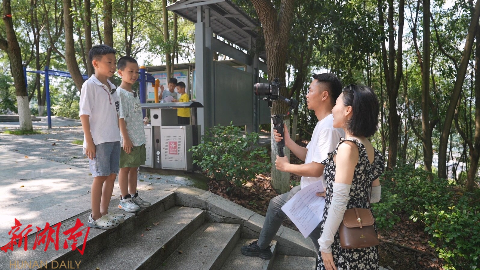 湖南日报·新湖南客户端7月25日讯(通讯员 朱志强)近日,永兴电视台“银都小主播”培训中心组织暑期班一期学员开展了一场别开生面的户外实践课,让孩子们走出教室、走进自然与生活场景,在真实环境中锻炼主持技巧,提升语言表达、临场应变等综合能力,用“小话筒”传递成长的声音。