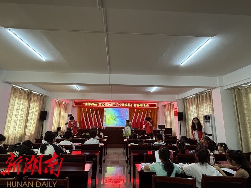 湖南日报·新湖南客户端7月25日讯(通讯员 杨庆童)7月24日,湘阴县洋沙湖镇新时代文明实践所、团镇委、社工站联合该镇青年志愿者协会,在花石村便民服务中心文化站设“临时课堂”,开展“书香润童心 护苗助成长”主题活动,近30余名中小学生参加。