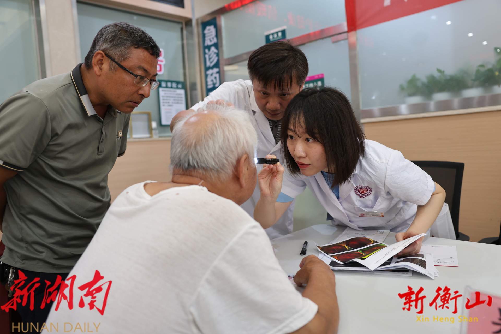 新衡山客户端7月25日讯(记者:赵诗 向微 通讯员:韦李灵)为让群众在家门口就能享受到省级优质医疗服务,7月25日,湖南省人民医院肿瘤科、眼科等多个学科9名专家来衡山县人民医院开展义诊活动。